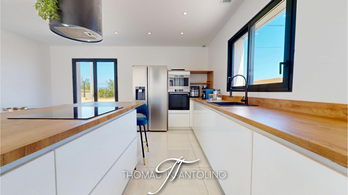 Découvrez cette magnifique villa construite en 2025, respectant les normes RE 2020 et couverte par une garantie décennale. Implantée sur une parcelle de 500 m², elle bénéficie d'un accès sécurisé menant à un jardin paysagé, entièrement clos, avec un pool house équipé de plans de travail en Granit Zimbabwe Noir et une piscine 6 X 3 en bâti, fonctionnement au sel avec régulateur de pH et filtre à verre.