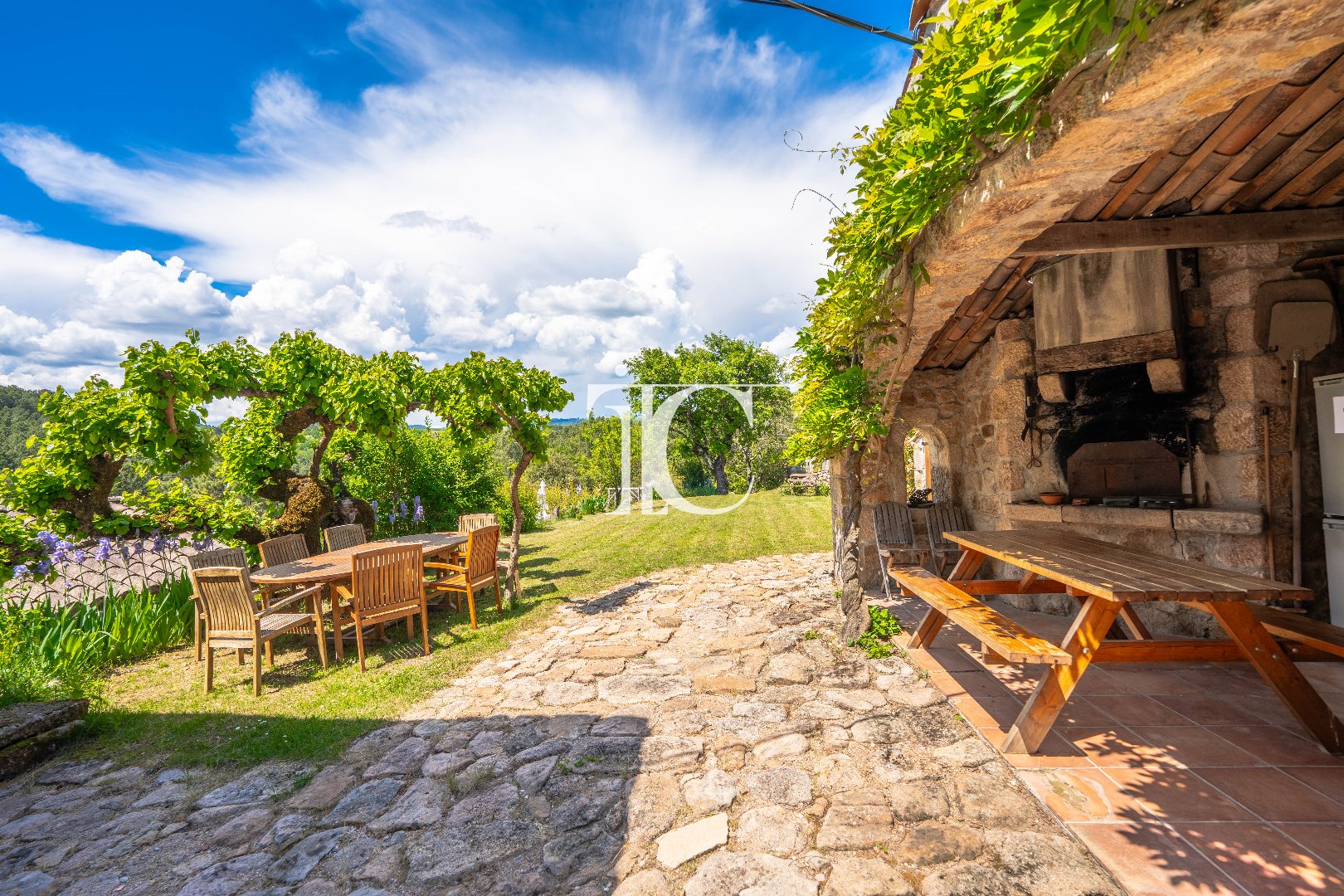 À l'extérieur, le terrain d'1,5 hectare, arboré et paysager, offre de multiples espaces de détente et un potager. Une piscine de 10 x 5 mètres vient parfaire ce lieu de vie, véritable havre de paix au c?ur de l'Ardèche méridionale.