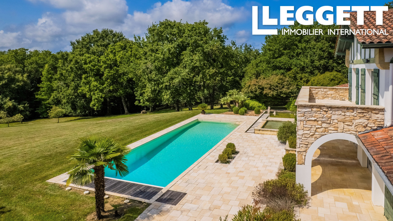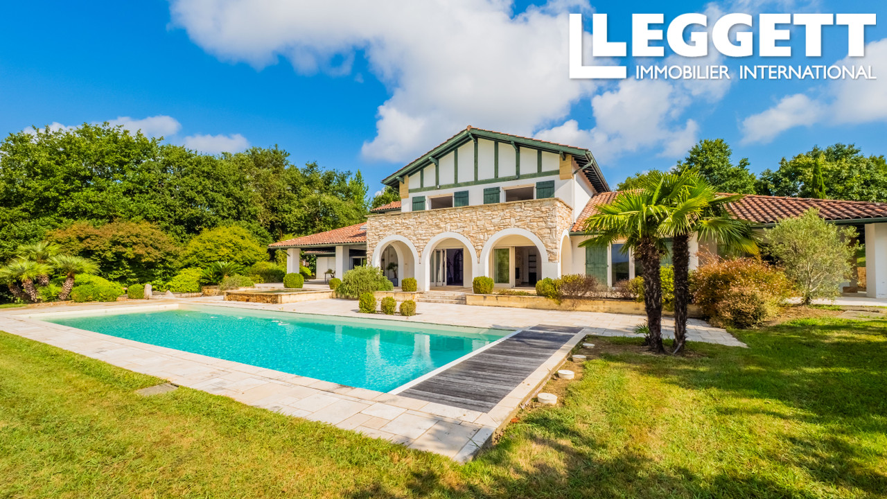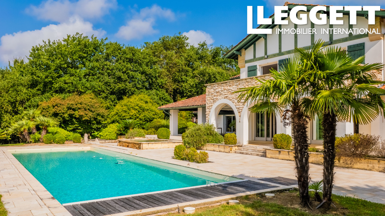 A38425KRK64 - Cette villa d'exception de 5 chambres est située au bout d'un cul-de-sac privé à Arcangues, à quelques minutes du prestigieux parcours de golf 18 trous d'Arcangues et à 10 minutes de Biarritz et de son aéroport. Offrant près de 400 m² de surface habitable sur un terrain paysager de 2,4 hectares, la propriété bénéficie de vues panoramiques sur les montagnes, d'une totale intimité et de finitions élégantes. Elle comprend une piscine chauffée, un parquet exotique à l'étage, une cuisine de luxe, une cuisine extérieure et un garage 4 places. Plusieurs pièces du rez-de-chaussée nécessitent des réparations suite à une fuite d'eau -- une occasion idéale pour personnaliser cet espace à votre goût. Une opportunité rare dans un cadre paisible et prisé, proche des plages, du golf et du village.