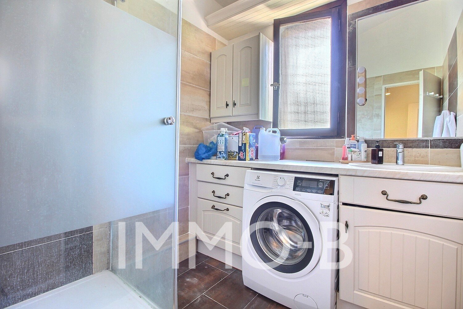 L'accès à l'étage se fait par un bel escalier moderne incrusté de leds. En mezzanine, un bureau ouvrant sur le séjour peut éventuellement être transformé en chambre. Une chambre et une salle de bain avec wc constituent une seconde partie nuit.