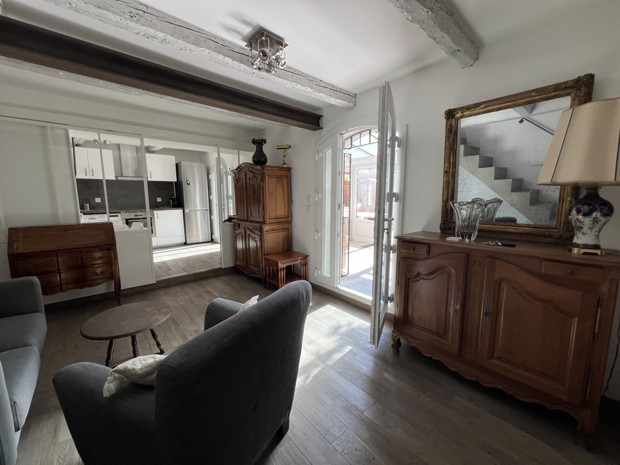 A 550m de l'eglise de Mazargues et des commerces du centre du village, dans une impasse au CALME, et un petit clos sécurisé, composé de quelques MAISONS, MAISON en PARFAIT ETAT de 75m2, sur un JARDIN de 147m2, qui laisse la possibilité de prévoir une petite PISCINE. En rez de jardin, la réception, de presque 30m2, composée d'un sejour avec une cuisine attenante et équipée, se prolonge d'une belle VERANDA de 21m2, face au JARDIN. L'étage réunit 2 chambres de chacune 11m2, avec rangements, et une salle d'eau avec wc. L'ensemble est en PARFAIT ETAT, coquet et confortable grâce à une renovation complète. Le JARDIN offre le stationnement d'une voiture et une 2de peut etre garée à l'exterieur, devant le portail, dans l'enceinte sécurisée du petit clos.