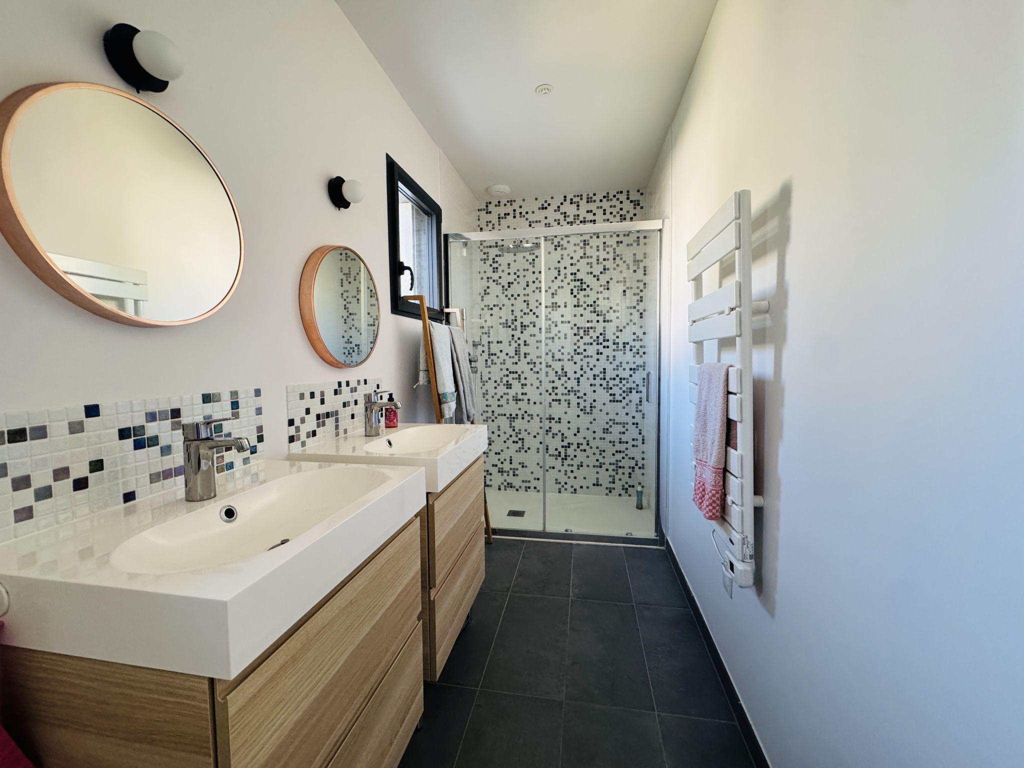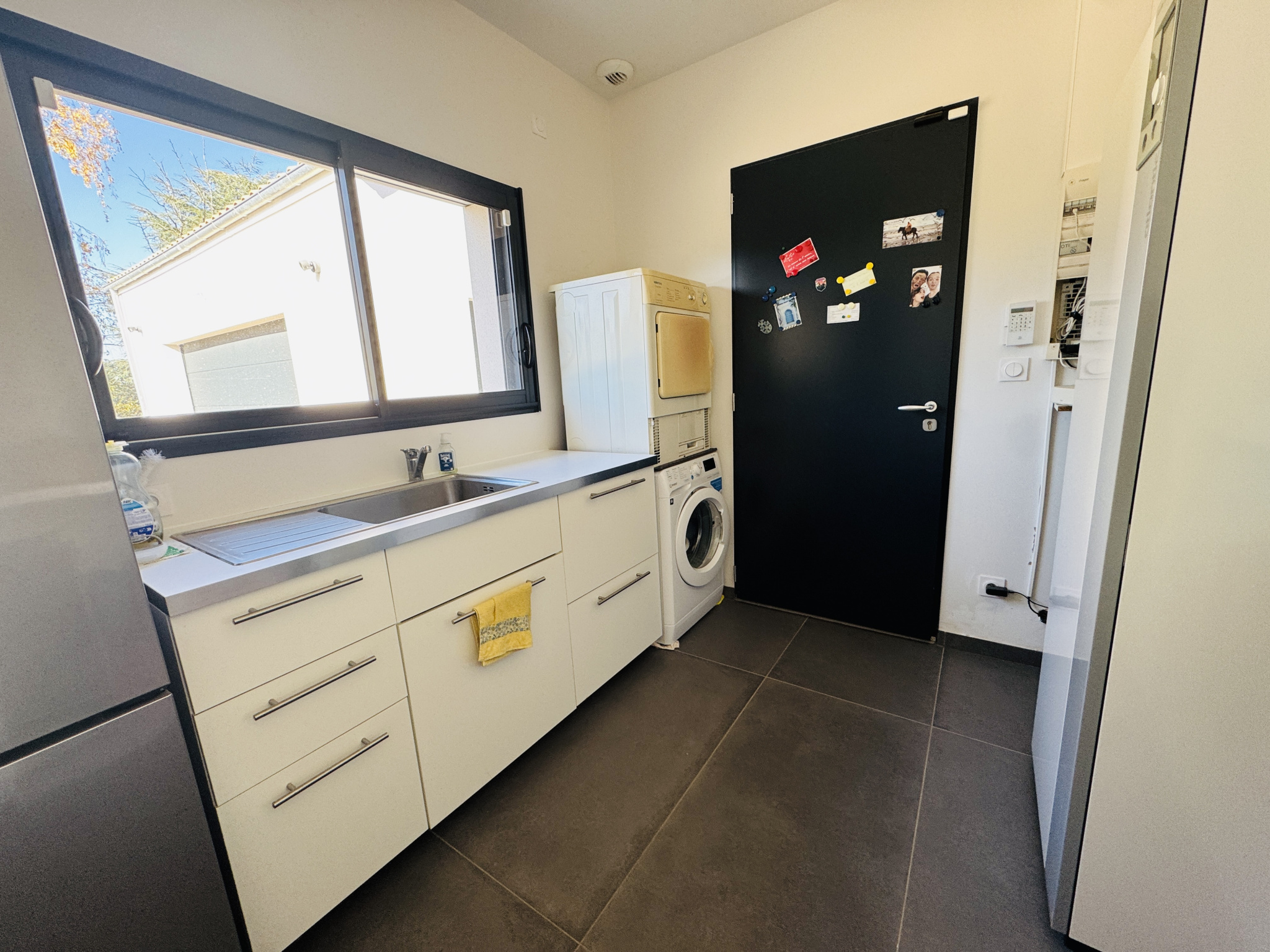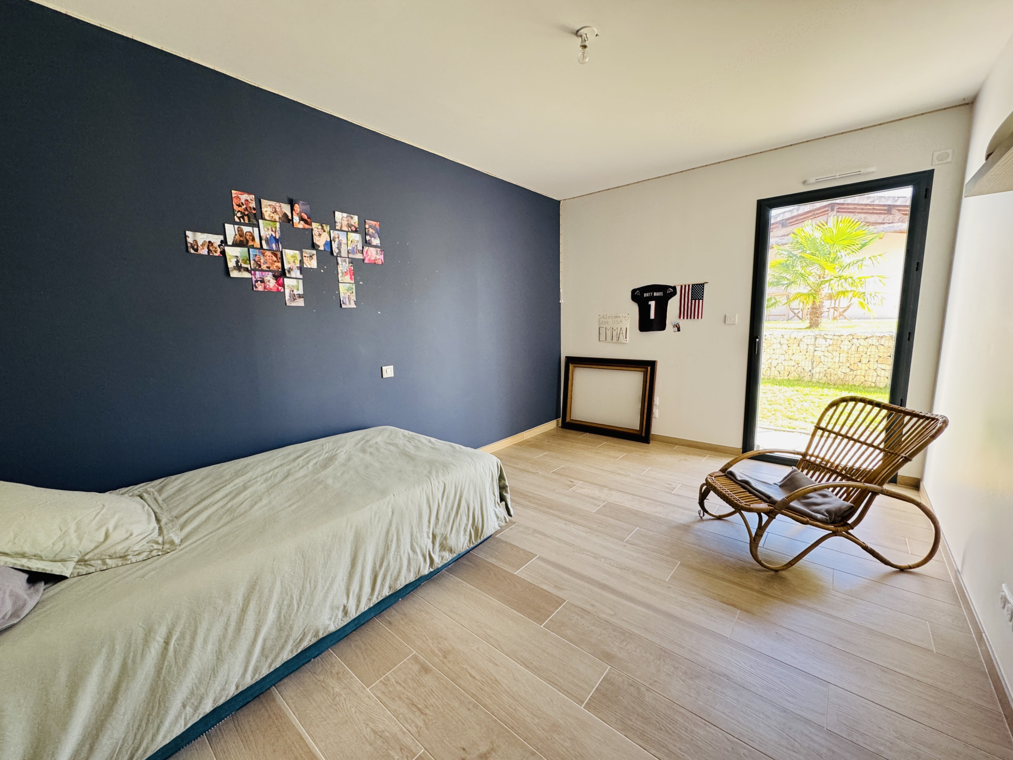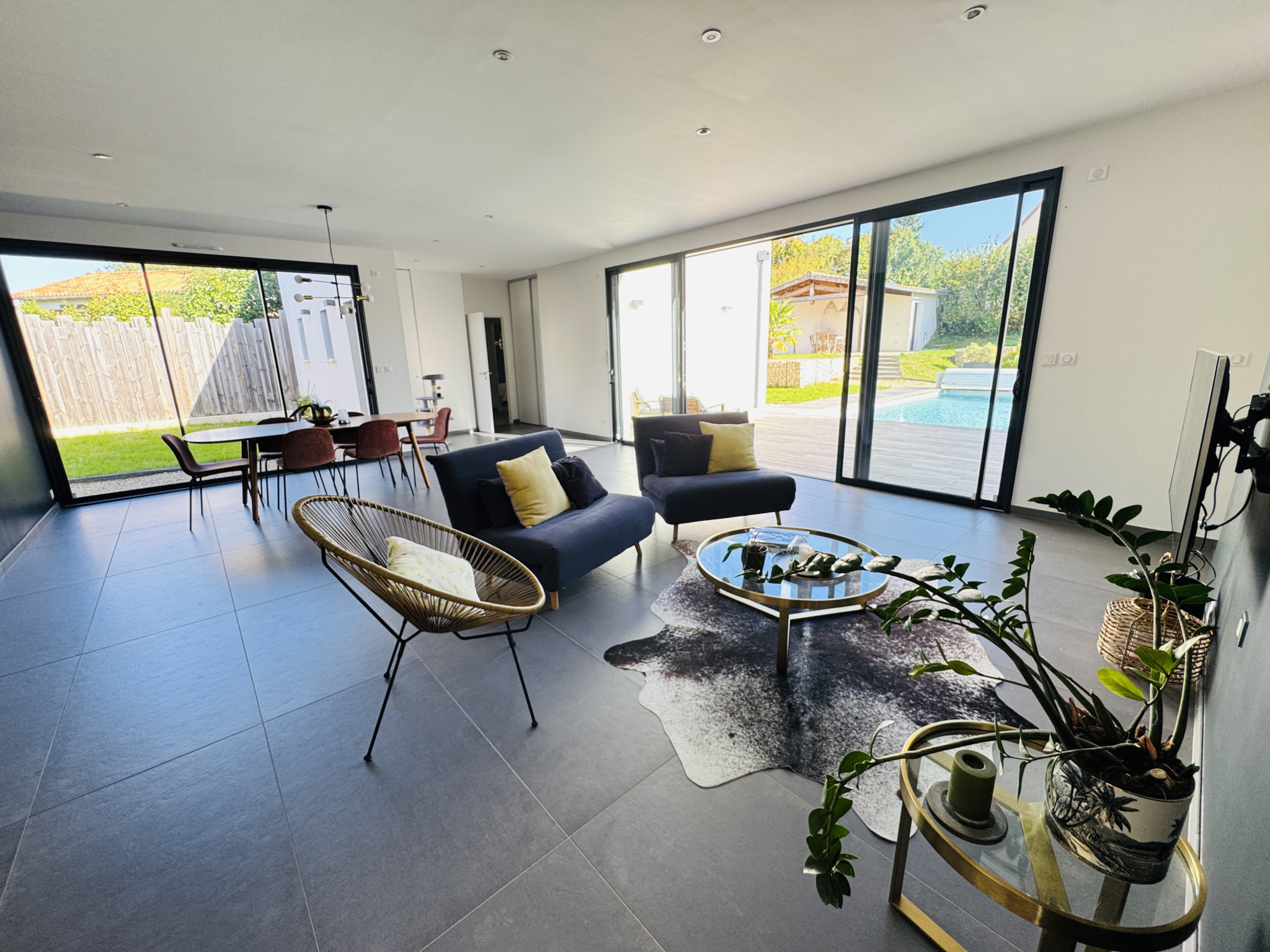 À vendre, aux portes de Poitiers, superbe maison contemporaine de plain-pied construite en 2018 en utilisant des matériaux de qualité. La maison offre 160 m2 habitables sur une parcelle de 1 300 m2 arborée et entièrement clôturée, avec piscine enterrée et terrasse en bois. Lumineuse et fonctionnelle, elle se compose d'une grande pièce de vie traversante avec cuisine ouverte aménagée et équipée, quatre chambres dont une suite parentale avec dressing et salle d'eau, une seconde salle d'eau, deux WC, un dressing indépendant, une buanderie avec accès extérieur, ainsi qu'un garage double avec mezzanine de rangement. Un poolhouse et une cuisine d'été couverte (à finaliser) complètent ce bien aux prestations de qualité. Un cadre calme et verdoyant, à quelques minutes de Poitiers centre.