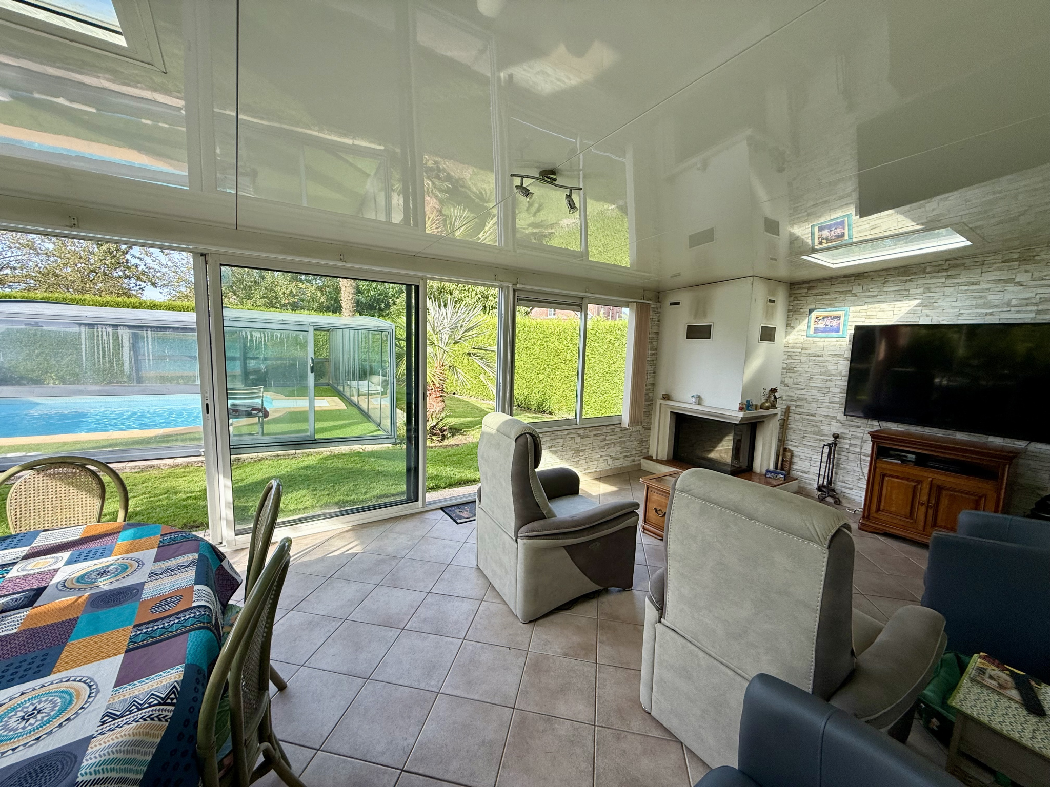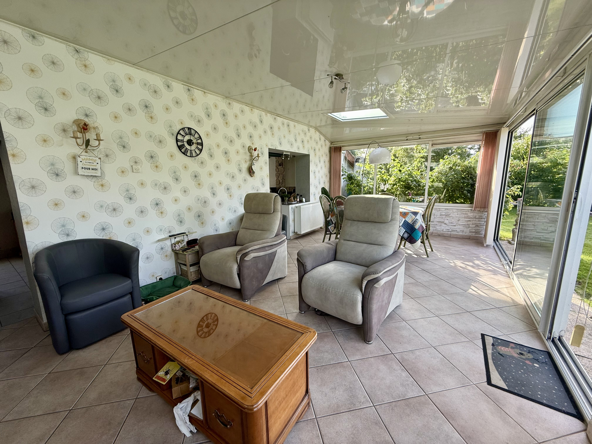 La maison d'environ 90m2 habitables vous offre: une cuisine aménagée, une salle à manger (possibilité de créer une 3ème chambre à la place), une belle véranda avec vue sur le jardin et la piscine, salle de douche et WC. A l'étage: palier, chambre, chambre avec salle de douche et WC. Cellier-buanderie.
