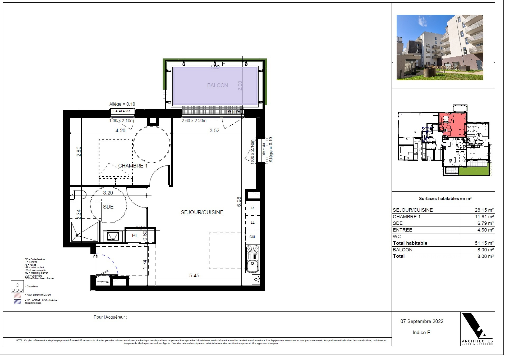 Ce bien propose un placard-penderie dans l'entrée, une pièce de vie confortable de 28m2 ouvrant sur le balcon profond de 8m2, puis une grande chambre, et une salle d'eau de 6.80m2