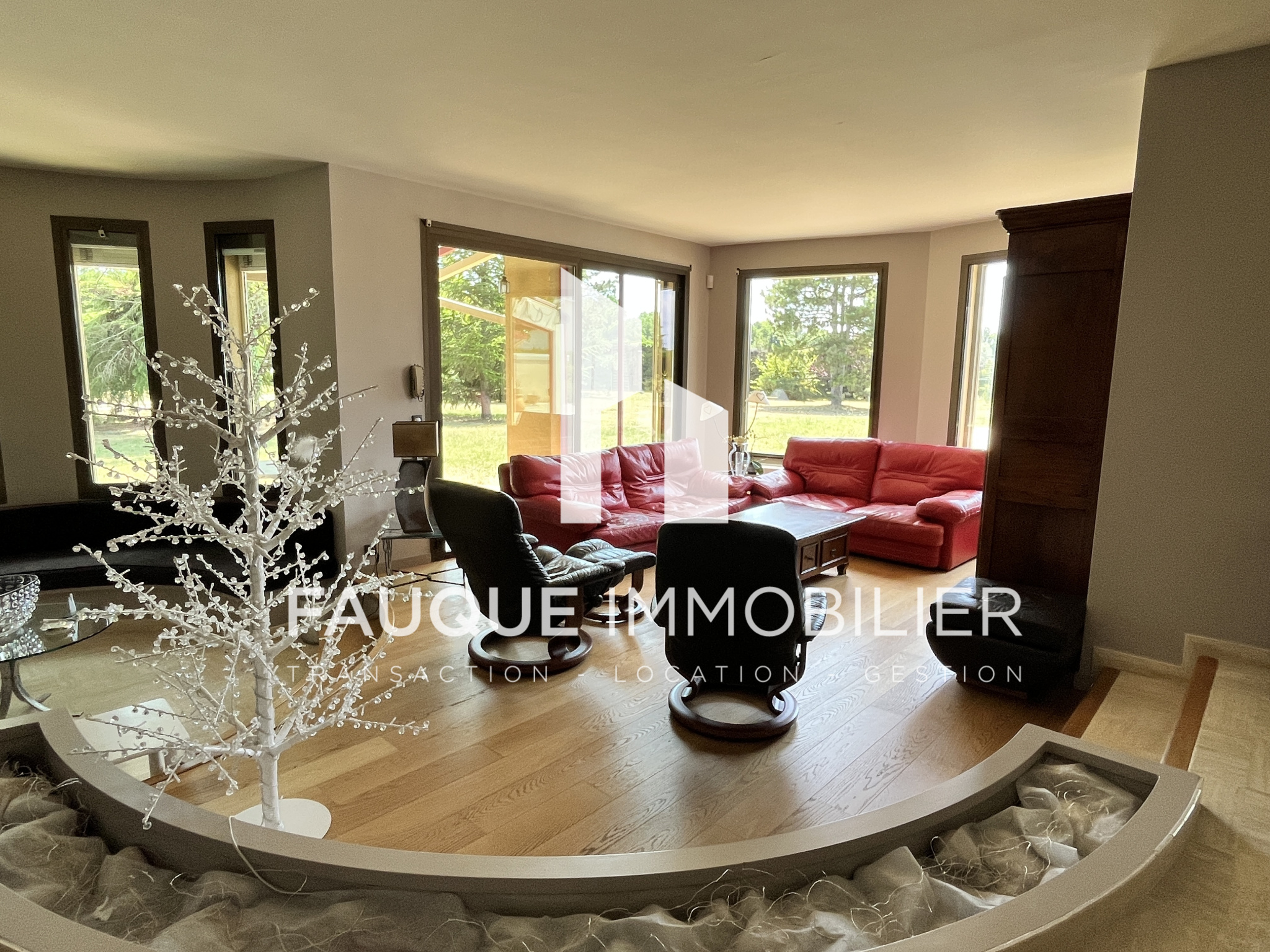 En pleine campagne, découvrez cette maison lumineuse à l'architecture moderne, implantée sur un magnifique terrain arboré de 5 000 m2 avec piscine.