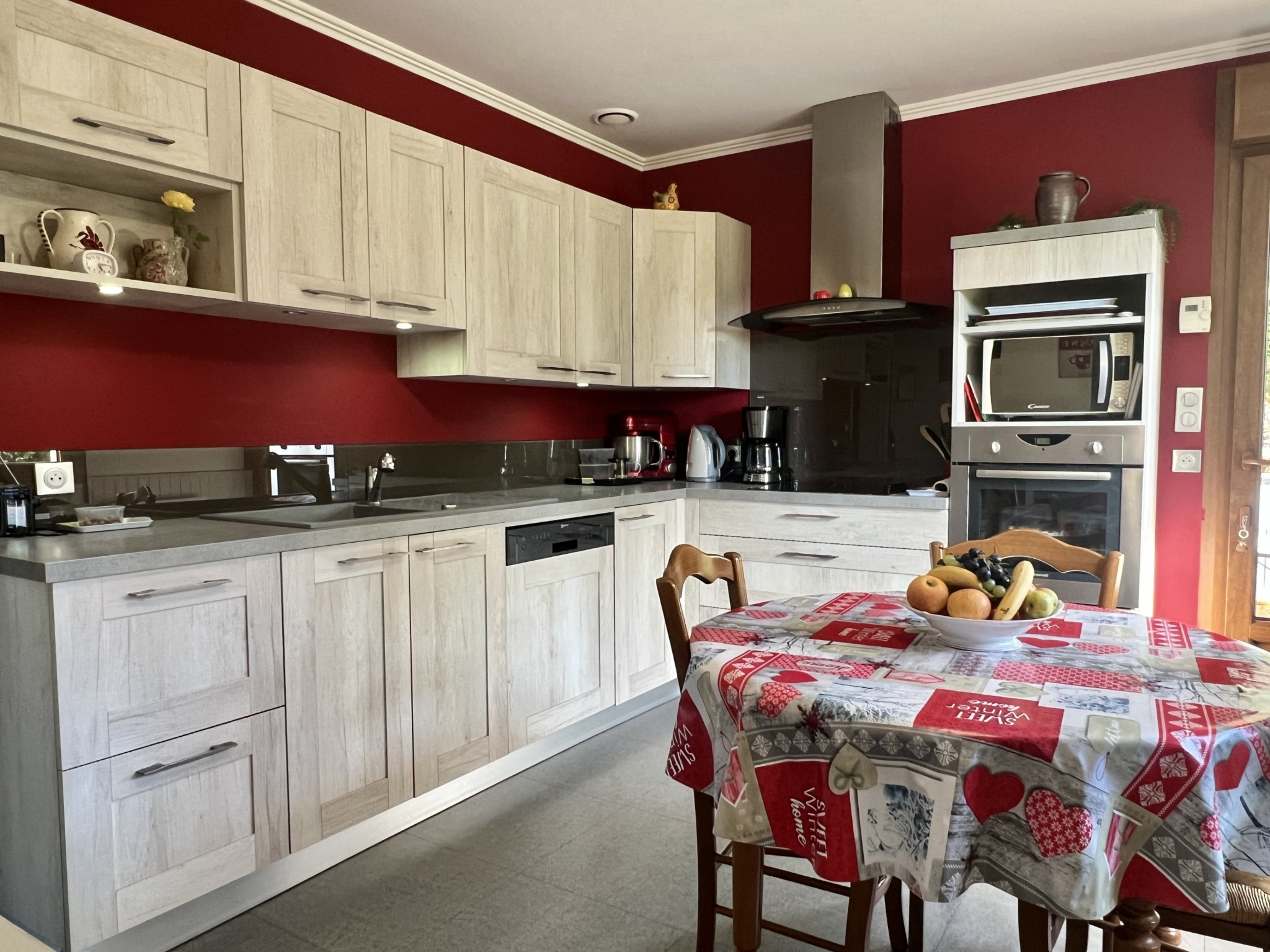 L'étage se compose de trois chambres confortables, d'un bureau pratique pour le télétravail et d'une salle de bains. Côté extérieur, une terrasse exposée plein sud vous permettra de profiter des beaux jours, sur un terrain clos de 1 500 m2.
