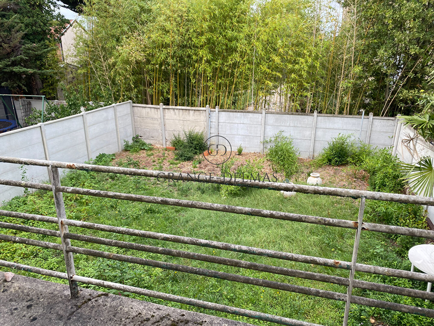 En retrait de rue avec jardin d'accueil, le rez-de-chaussée surélevé s'ouvre sur une vaste entrée avec tomettes qui dessert un double séjour traversant avec parquet ouvrant sur un balcon qui surplombe le jardin. La cuisine indépendante a également un accès au balcon. Wc.