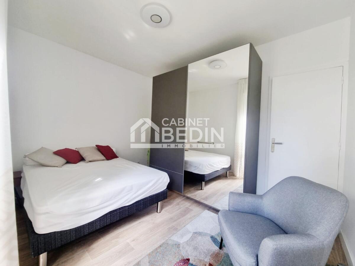 MERIGNAC CENTRE. Appartement T2 vendu meublé, rénové en 2022, idéalement situé dans l'hypercentre de Mérignac, à proximité de toutes les commodités (tram A à moins de 5 minutes, cinéma, commerces, bus . . . ). Cet Appartement bénéficie d'une entrée, d'un grand séjour lumineux avec cuisine ouverte, avec un accès sur le balcon, d'une chambre avec des rangements et d'une salle d'eau avec wc. Vous profiterez d'une place de parking sécurisée, d'une grande cave en rez-de-chaussée et d'un accès à la piscine de la résidence. Tous les travaux d'entretien de la résidence ont été votés et réalisés. . Les informations sur les risques auxquels ce bien est exposé sont disponibles sur le site Géorisques : www. georisques. gouv. fr. Montant estimé des dépenses annuelles d?énergie pour un usage standard : entre 620 et 880 Euros/an (année de référence 2023) Bien en copropriété de 797 lots dont 317 lots principaux , Charges annuelles 1936. 00 Euros , Surface Carrez 38m²