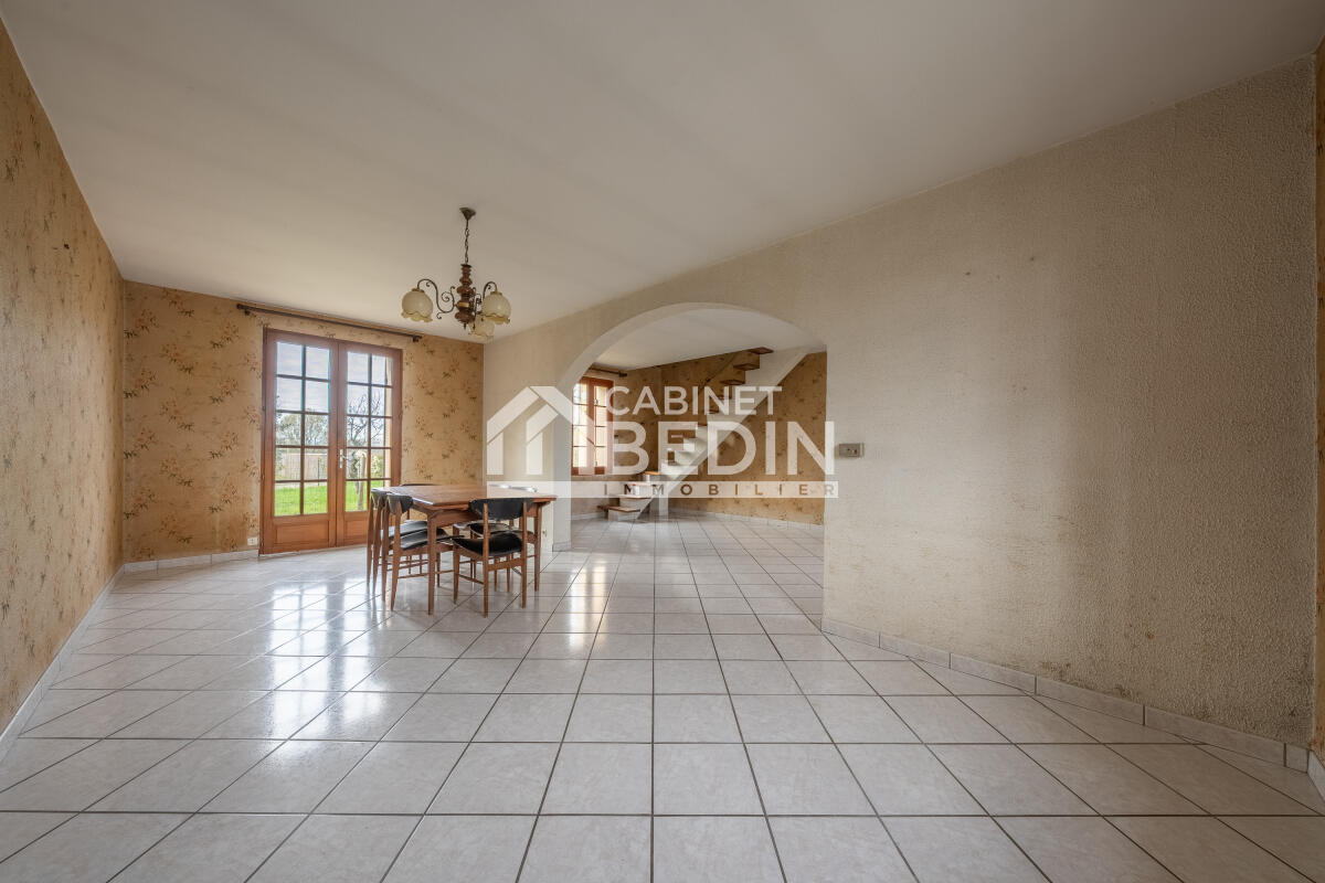 Exclusivité CABINET BEDIN - Sadirac. Située dans un secteur recherché, vous découvrirez cette bâtisse en pierre à rénover selon vos projets. Elle offre actuellement une entrée, un salon séjour spacieux, une cuisine, 3 chambres et une salle d?eau. Un jardin d?environ 400 m² ainsi qu?un garage indépendant d?environ 30 m² complètent ce bien au fort potentiel. Grâce à son emplacement, ce bien offre un cadre idéal pour l?exercice d?une activité artisanale ou libérale, avec une excellente visibilité et une accessibilité optimale. . Les informations sur les risques auxquels ce bien est exposé sont disponibles sur le site Géorisques : www. georisques. gouv. fr. Montant estimé des dépenses annuelles d?énergie pour un usage standard : entre 2101 et 2843 Euros/an (année de référence 2023)