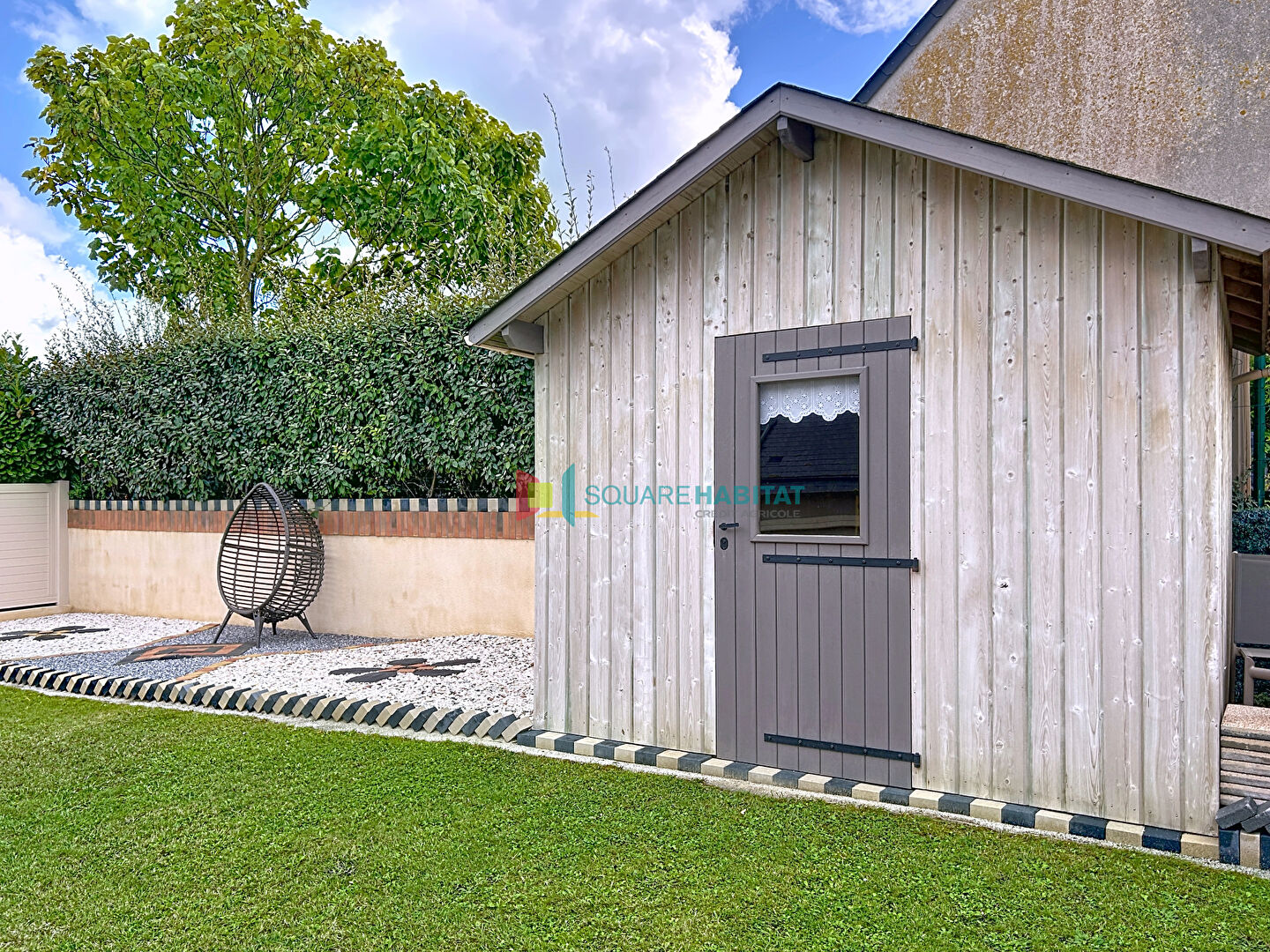 Un agréable jardin, un garage, une arrière-cuisine et un cabanon complètent ce bien aux prestations soignées.