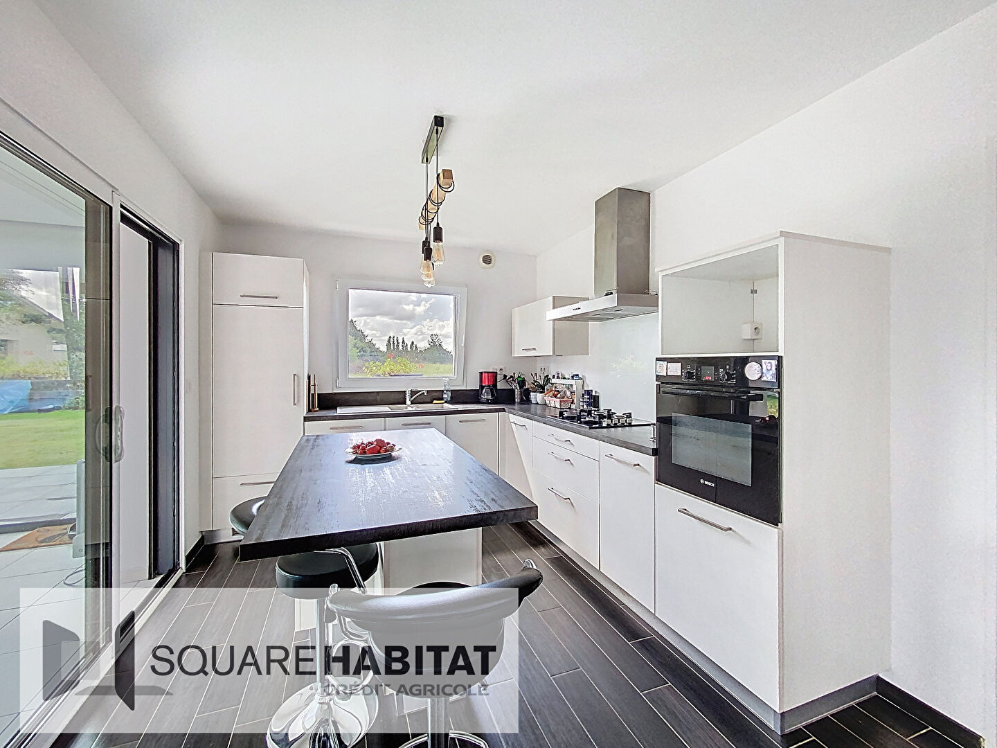 Dans un quartier résidentiel calme tout en étant proche du centre-ville de BEGARD(22140), maison contemporaine construite en 2014 sur une parcelle de 650m2, comprenant : entrée avec placards, salon/séjour avec poêle à bois s'ouvrant sur une cuisine aménagée/équipée communiquant sur une extension vitrée de 2021, cellier, une chambre avec placard, salle d'eau et wc séparés avec lave-main. A l'étage : un grand palier dessert quatre belles chambres et une salle de bains. Garage avec porte automatisée, abri de jardin en dur de 15 m2 environ. Jardin clos par portail électrique et aménagé, cour goudronnée. Double vitrage aluminium et volets roulants électriques, chauffage au sol par pompe à chaleur (géothermie), ballon d'eau-chaude thermodynamique, tout à l'égout