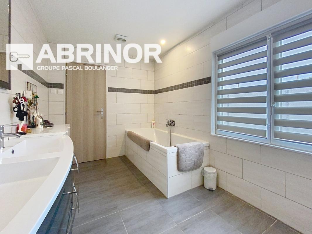 Superbe salon/séjour donnant sur le jardin exposition Sud, jolie cuisine équipée moderne, grande salle de bains aux 3 éléments, cellier pour branchement machines.