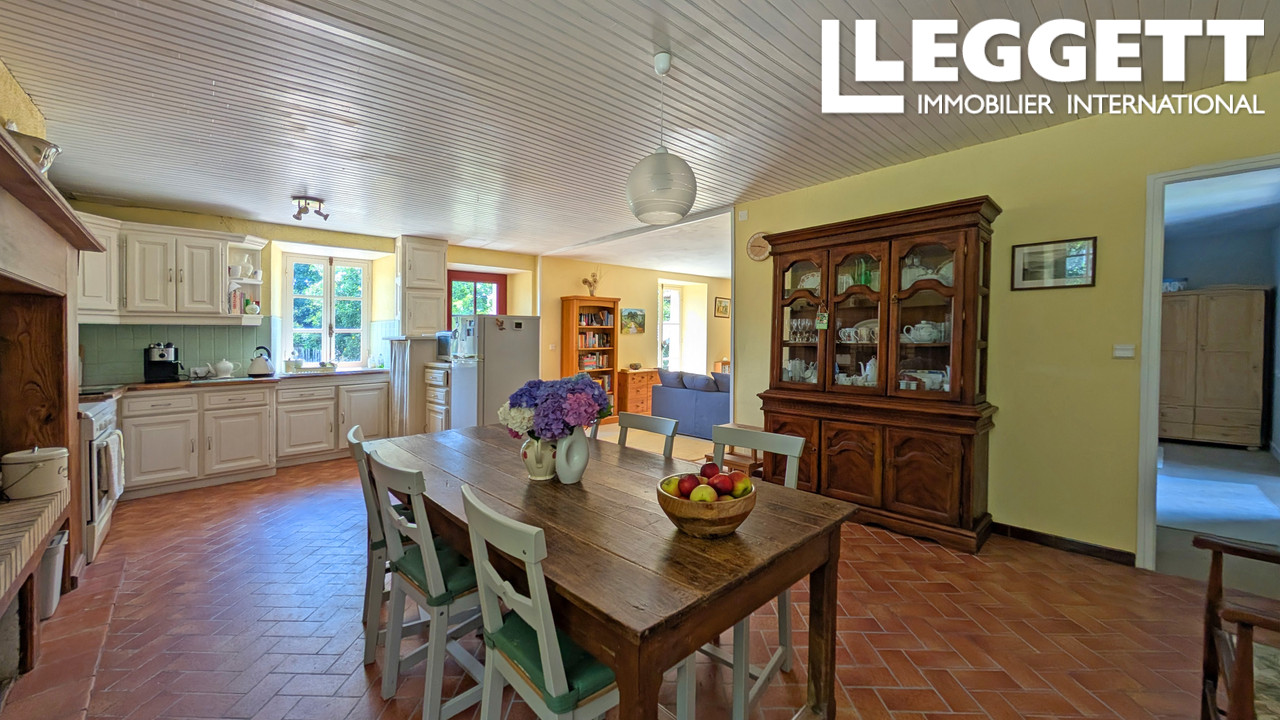 A38659SUG24 - Un ensemble de bâtiments anciens en pierre comprenant une ferme du XVIIIe siècle de plain-pied avec 3 chambres à coucher qui a été restaurée à l'intérieur avec une grande cuisine ouverte et une aile plus tardive. Il y a également deux granges et une maisonnette en pierre à restaurer entièrement : un joli projet pour le prochain propriétaire. Il y a un lac de baignade et de planche à voile à 7 minutes.