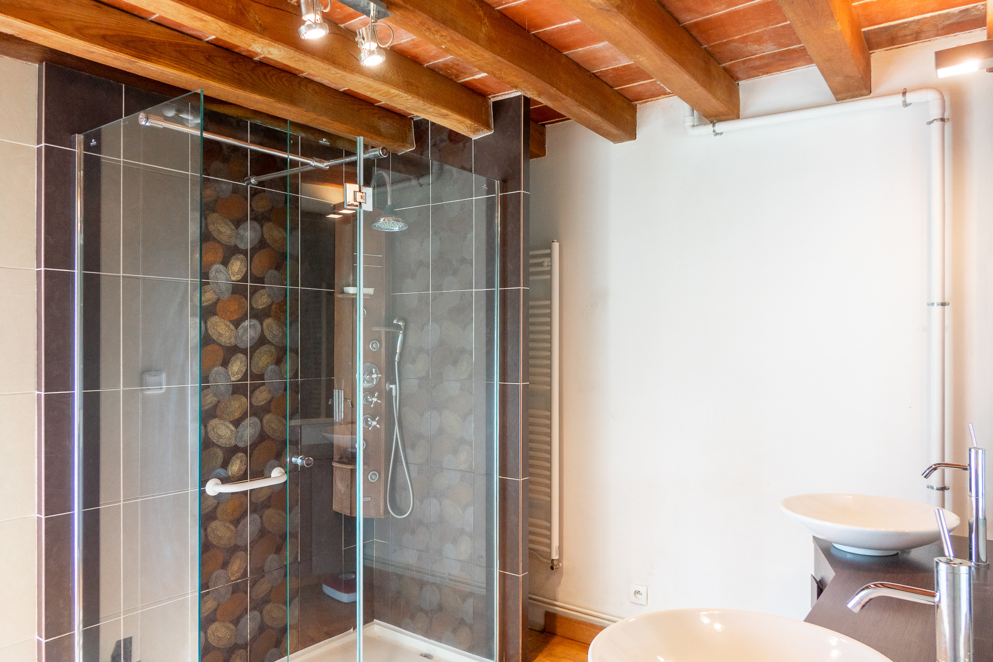 Dans la seconde partie, vous profiterez d'une chambre au rez de chaussée, d'un WC, d'une salle d'eau, et d'une salle de jeux. A l'étage, une mezzanine, une chambre et une 2e salle d'eau avec WC complètent ce bien, offrant confort et praticité au quotidien.