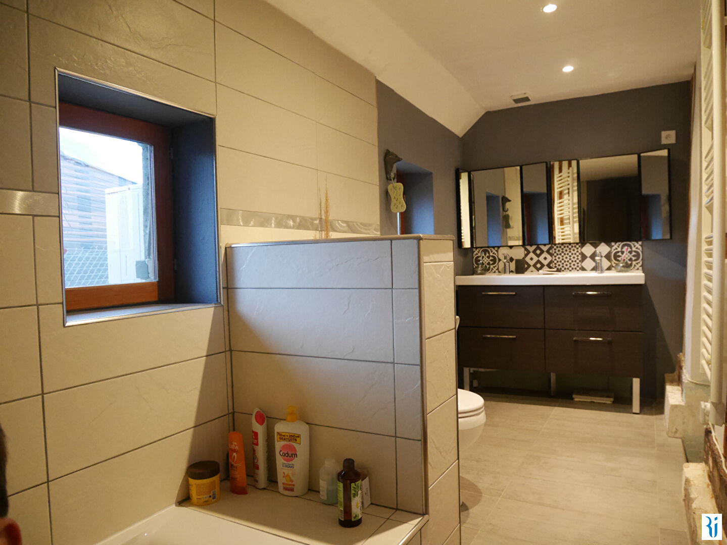 PROCHE PAVILLY- Maison Ancienne Rénovée Comprenant au Rez-de-chaussée, Entrée, Cuisine Aménagée et équipée ( Meubles hauts et bas, Plaque, Four, Hotte), Salle de Bains avec WC, Séjour-Salon, avec Poêle à granules, ouvert sur une Véranda. Lingerie, Dressing, une Chambre . Au premier étage, Palier, Trois Chambres, WC. Le tout édifié sur un terrain d'environ 486 m2. Garage attenant, Une dépendance. Classe Energie : E Classe Climat : B- Audit Energétique effectué - Prix moyens des energies indexés sur les années 2021, 2022, 2023 (abonnement compris) entre 3260 Euro et 4460 Euro par an - Honoraires Agence charge acquéreur 4.85 % TTC soit un prix de 206 000 Euro Hors Honoraires. - Non soumis à l'obligation de débroussaillement - « Les informations sur les risques auxquels ce bien est exposé sont disponibles sur le site Géorisques : www.georisques.gouv.fr »
