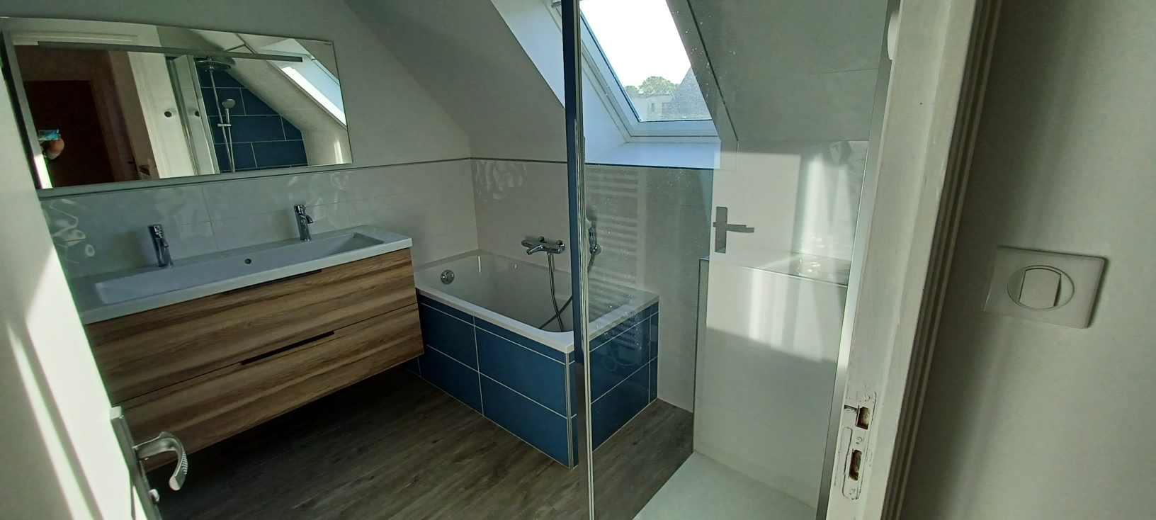 Sous-sol complet aménagé, terrasse exposée ouest donnant sur le séjour.