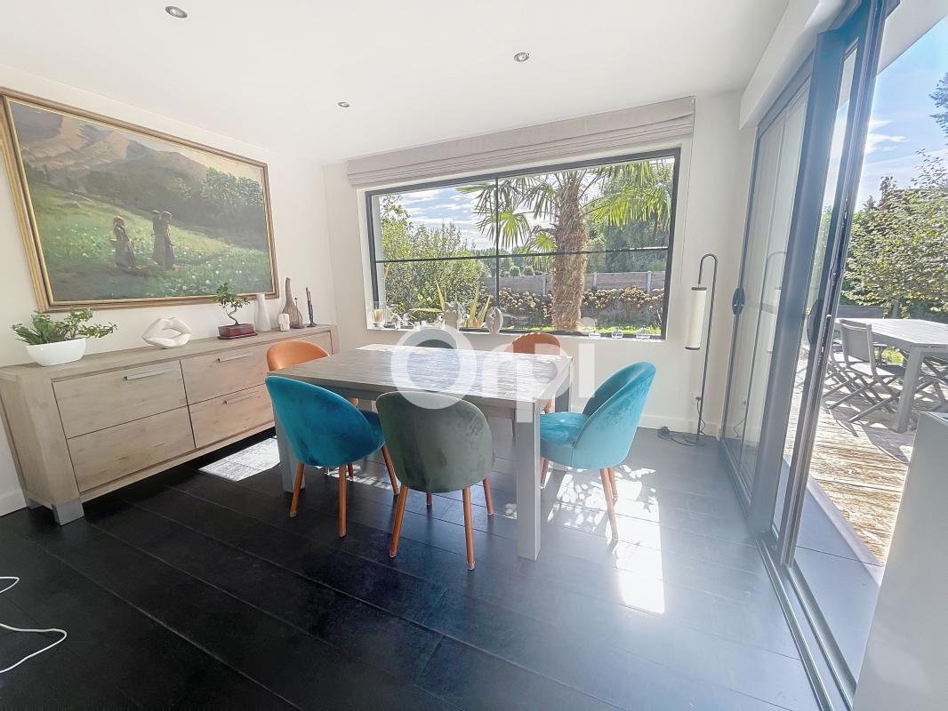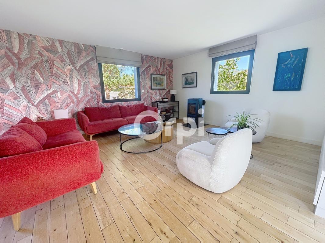 Au rez-de-chaussée, la maison se compose d'une entrée, d'un vaste salon-séjour bénéficiant d'un ensoleillement optimal et donnant accès à une terrasse de 33 m², d'une cuisine équipée, d'une buanderie, une chambre et une salle d'eau, de WC séparés, et d'une grande pièce pouvant servir d'atelier. Vous y trouverez également un local à vélos ainsi qu'un espace pouvant être aménagé en bureau ou en dressing.