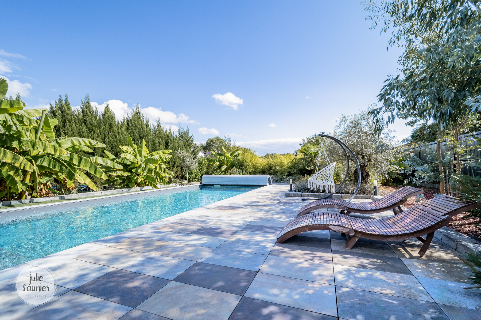 Deux terrasses : une terrasse esprit Bali et une terrasse couverte en bord de piscine