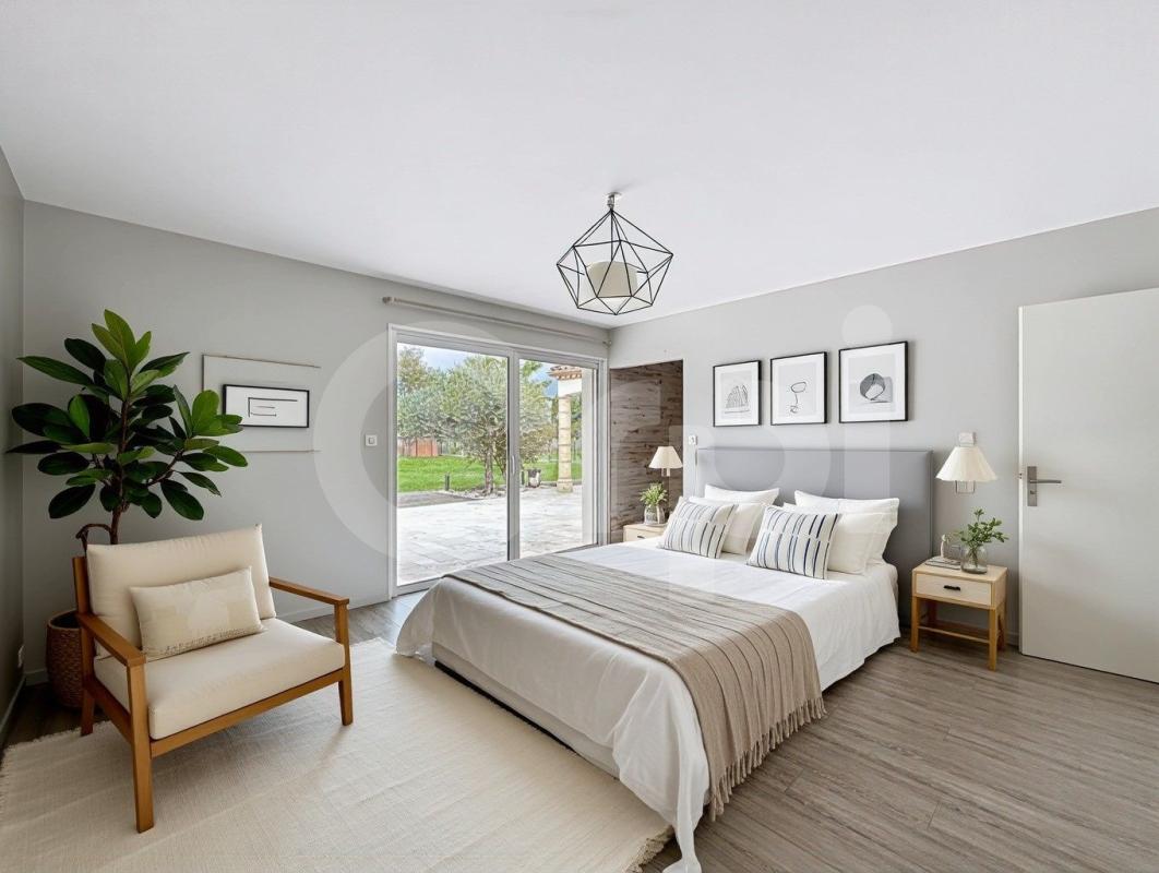 Maison de plain pied de 2013 environ 145 m² habitables avec garage et jardin paysagé de 1716m2 clôturé