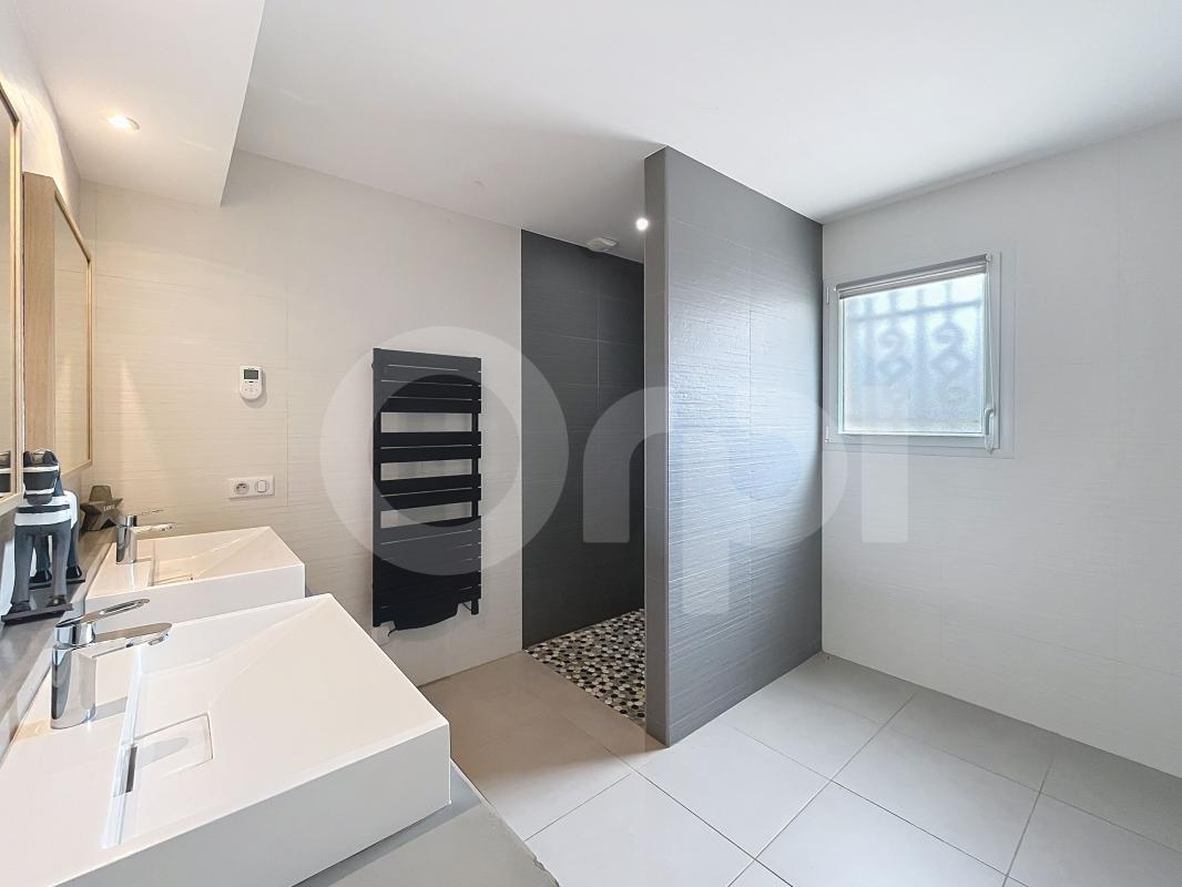 Salle d'eau douche à l'italienne, double vasque. Il est possible de rajouter une baignoire (plomberie en attente), WC independant