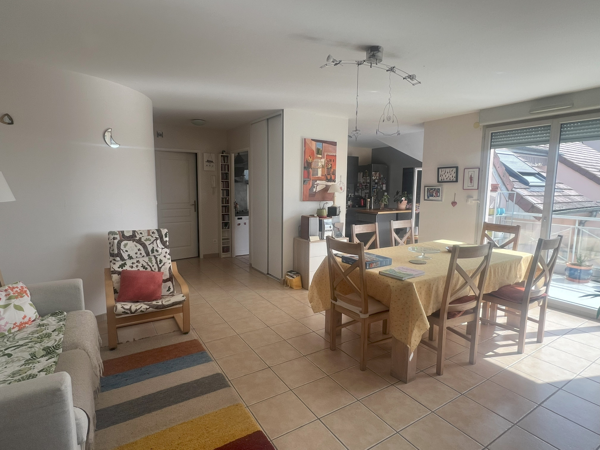 Appartement loué au 2eme étage sur 2 avec ascenseur composé d'une entrée, salon-séjour sur balcon, cuisine, 3 chambres dont une avec terrasse, une salle de bains, wc un cellier.