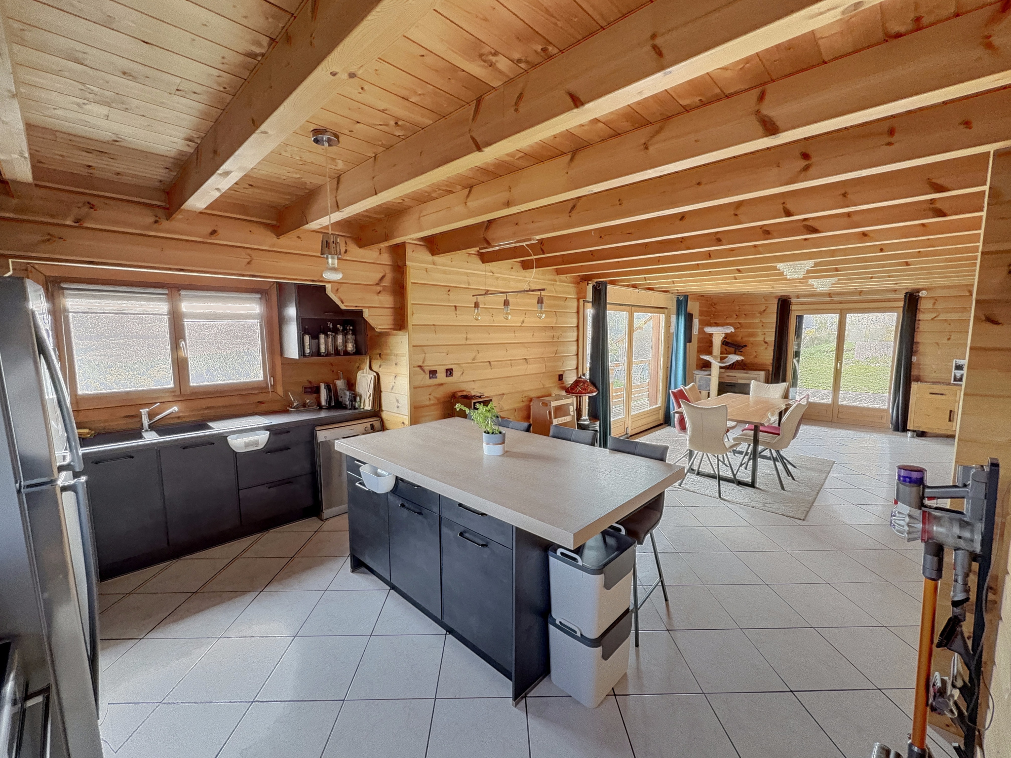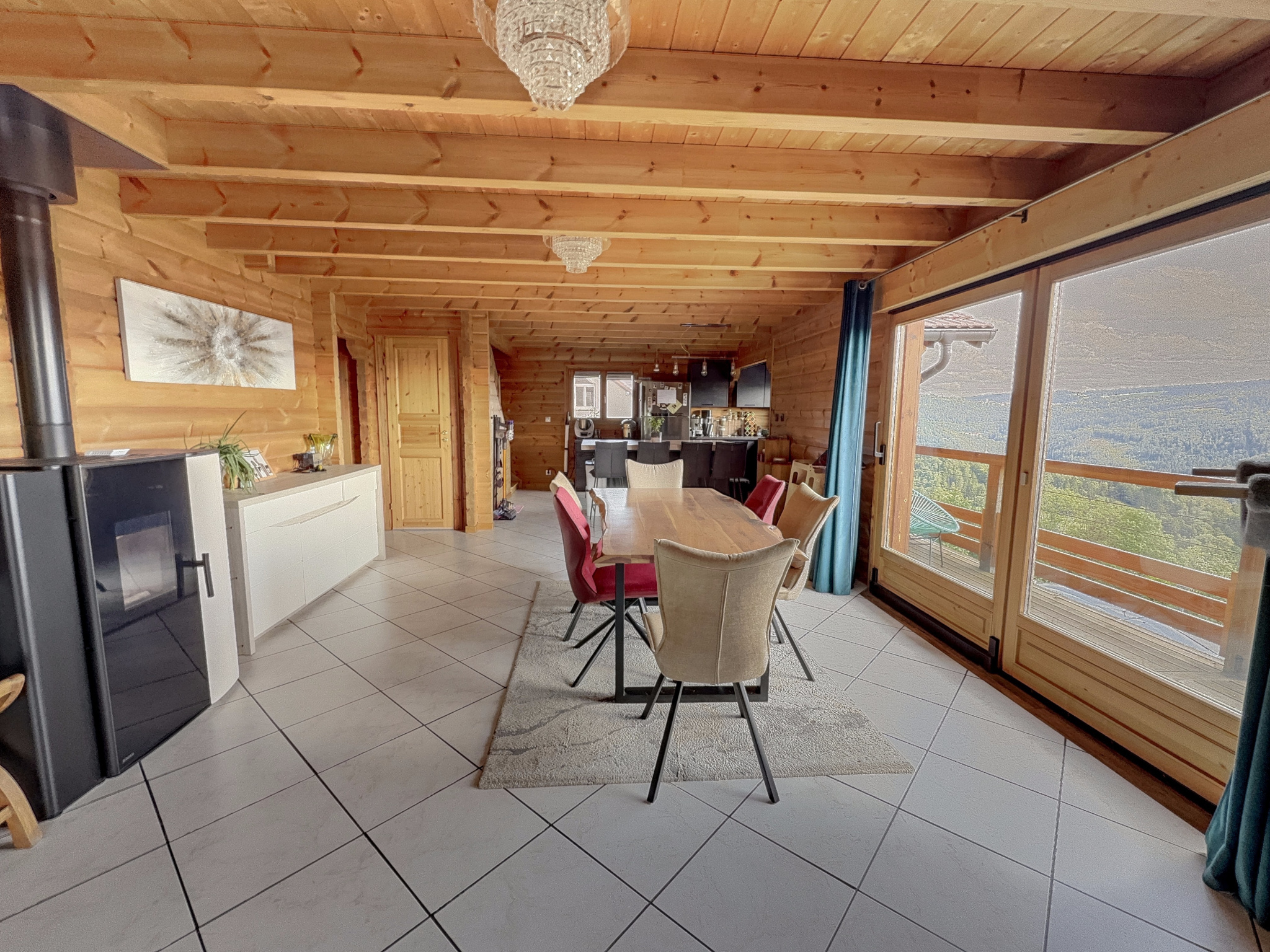 L'Agence Francimmo vous propose en exclusivité ce magnifique chalet de 156m2 habitables comprenant : au sous-sol: entrée, cellier/buanderie, garage 2 voitures et une cave. Au rez-de-chaussée surélevé, cuisine aménagée ouverte sur spacieux salon séjour avec poêle et accès terrasse, WC, salle de bains et une chambre. A l'étage, la maison dispose de 3 chambres et d'une salle de bains avec WC. Terrain de 1005m2. Coup de coeur assuré pour ce bien avec une superbe vue dégagée sur la Suisse, dans lequel vous n'aurez plus qu'à poser vos valises. UNIQUE sur le secteur, ne manquez pas cette opportunité et contactez-nous pour plus d'informations ou pour venir le visiter. Les risques auxquels ce bien est exposé sont disponibles sur le site Géorisques.