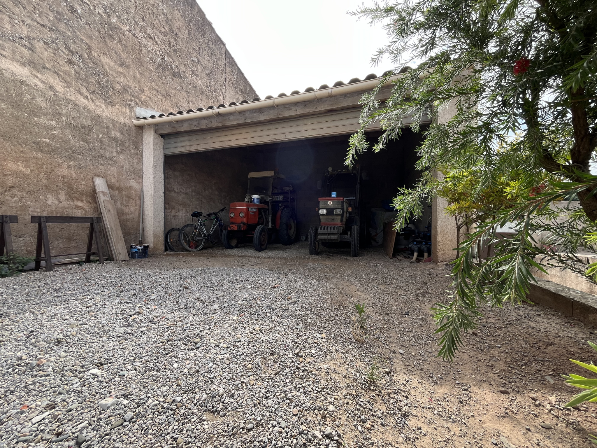 Terrain clos de 816 m2 avec un grand hangar fermé pour le rangement, les loisirs. Un carport pouvant abriter plus de 4 véhicules