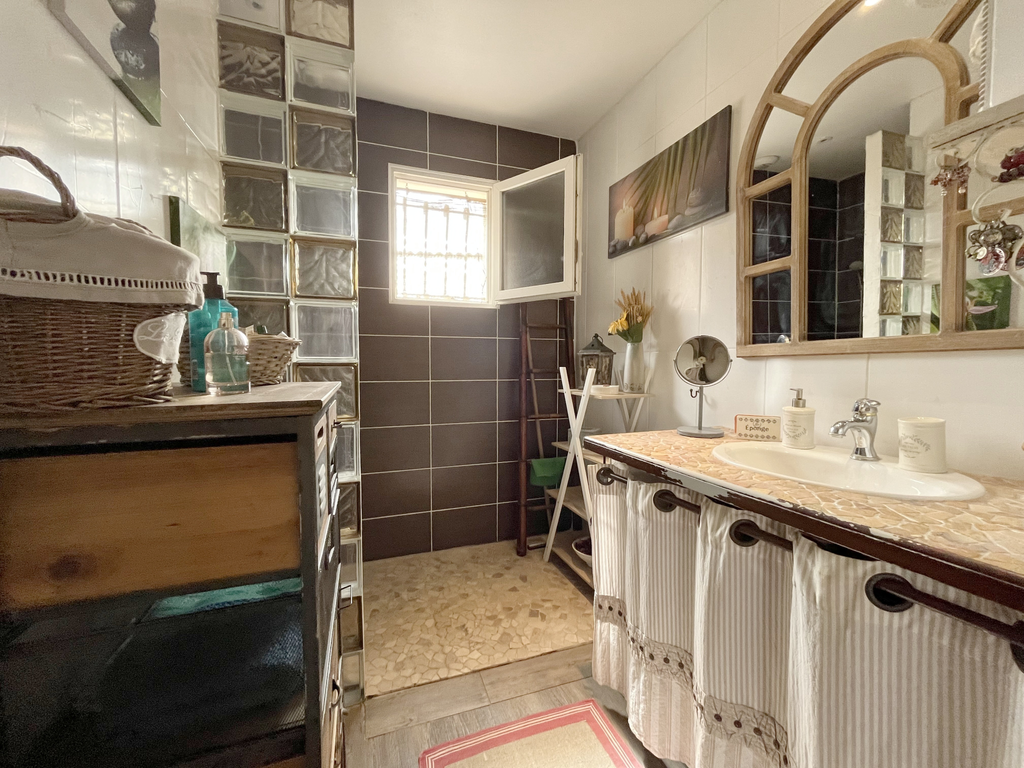 Elle se compose de 3 chambres lumineuse une pièce de vie spacieuse et conviviale,ouverte sur une cuisine équipée, ainsi qu'une grande arrière-cuisine.