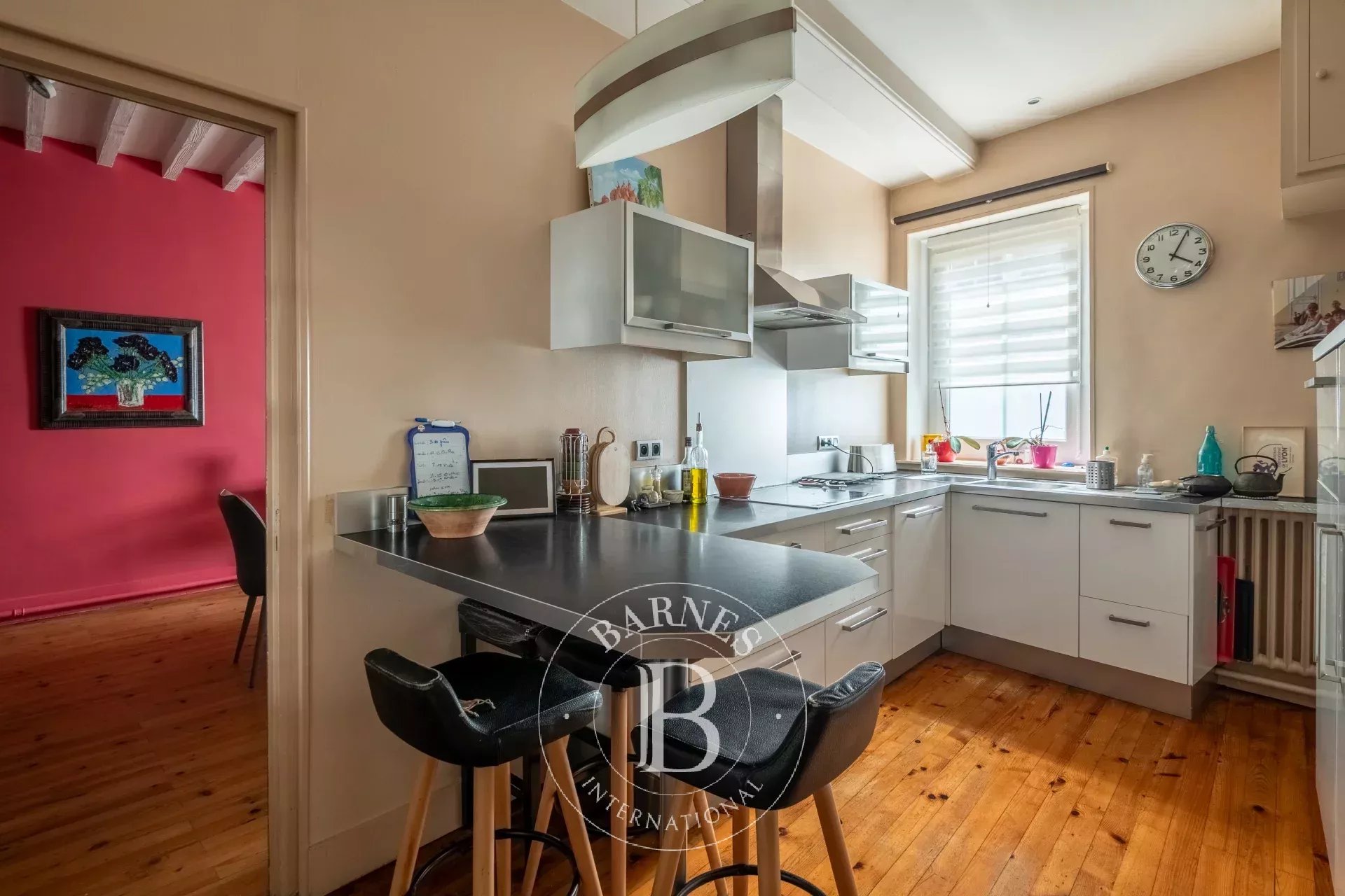 Le rez-de-chaussée accueille une chaleureuse pièce de vie avec cheminée, ouvrant sur une vaste terrasse équipée d’une cuisine d’été et bordée d’un bassin à poissons. Une cuisine indépendante ainsi qu’une salle à manger complètent les espaces de vie.