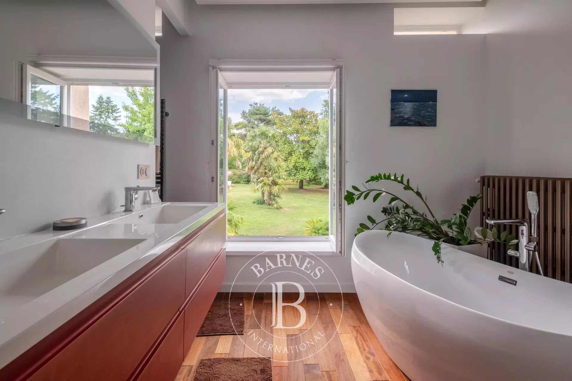 Édifiée sur un terrain clos et arboré de 1 250 m², la propriété s’organise sur deux niveaux.