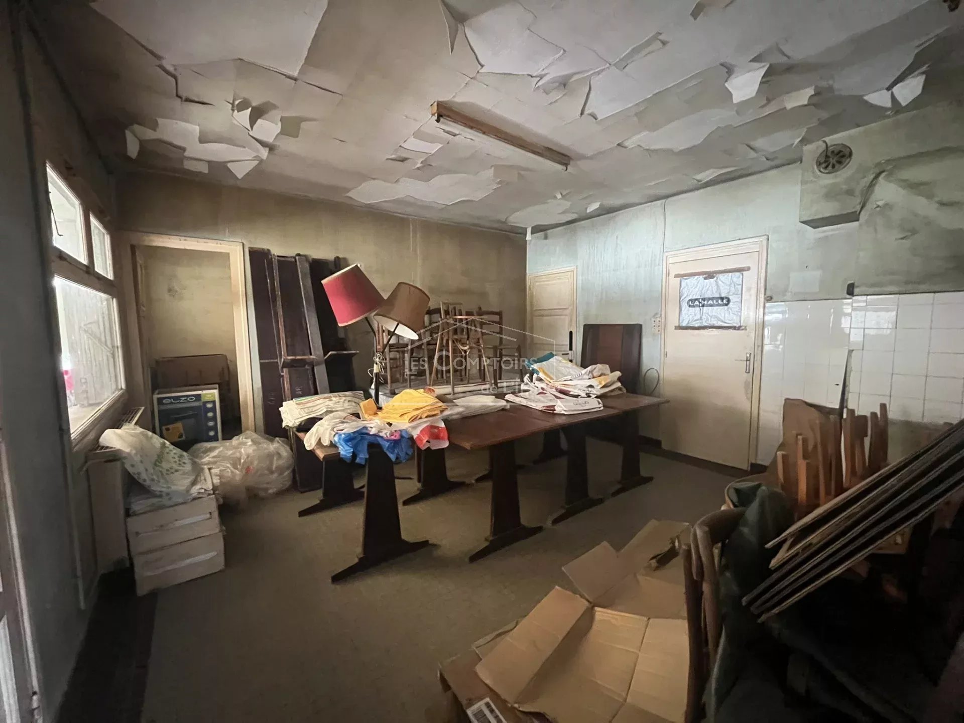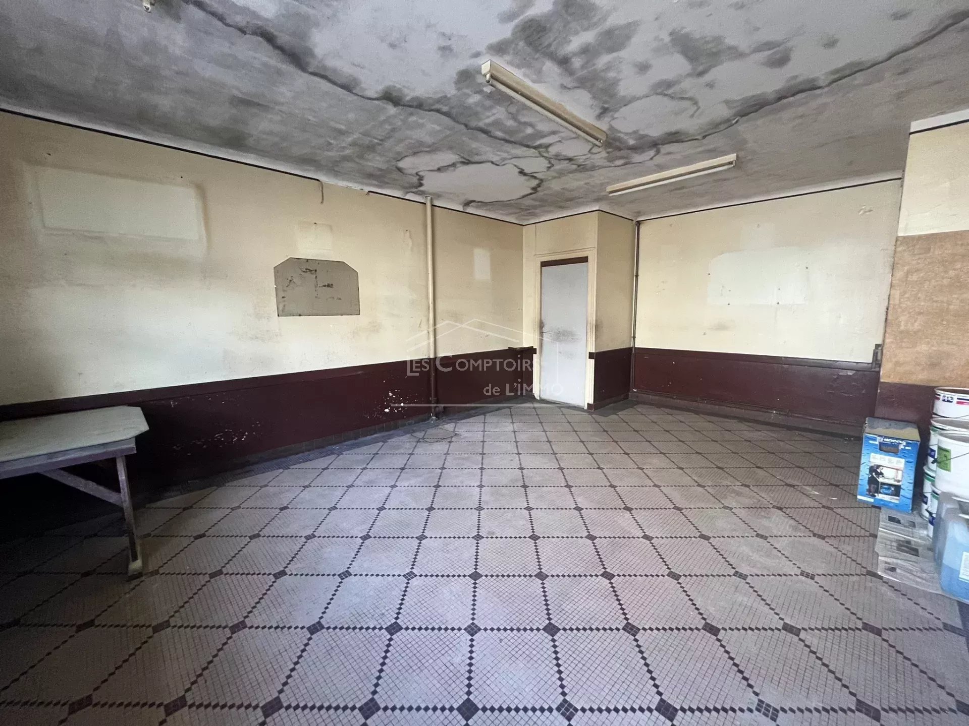 restaurant, arrière-cuisine, cave, réserve, sanitaires, débarras sous l'escalier, ancienne