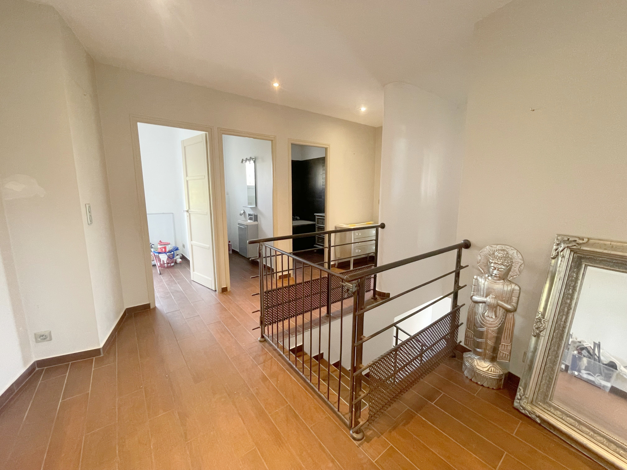 Comprenant un spacieux salon-séjour lumineux , 3 chambres dont une suite parentale avec une salle d'eau , une cuisine séparée entièrement équipée , une salle de bains et un studio indépendant au RDC entièrement aménagé et équipé .