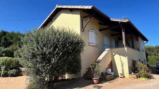 Le rez-de-chaussée est légèrement semi-enterré avec accès de plain-pied par le pignon situé au Sud, aménagé en partie habitable, par la galerie Mâconnaise ou par l'entrée pricipale située à l'ouest.