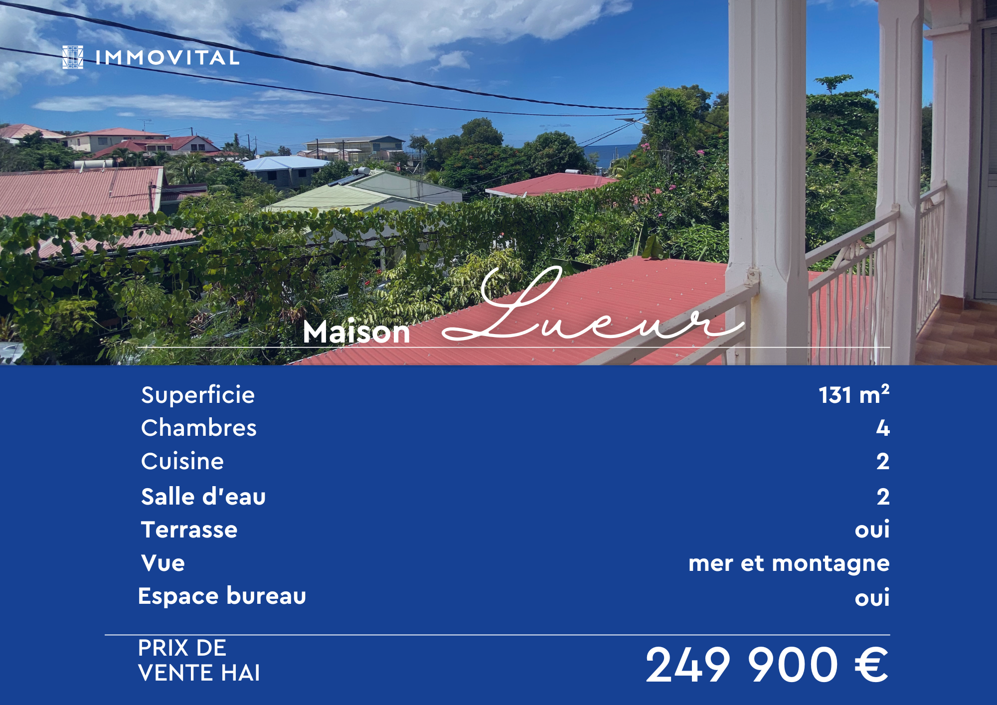 Ce bien vous est proposé par IMMOVITAL BASSE-TERRE 05 90 88 10 10 . IMMOVITAL est également présent à Jarry, Le Moule et Bouillante.