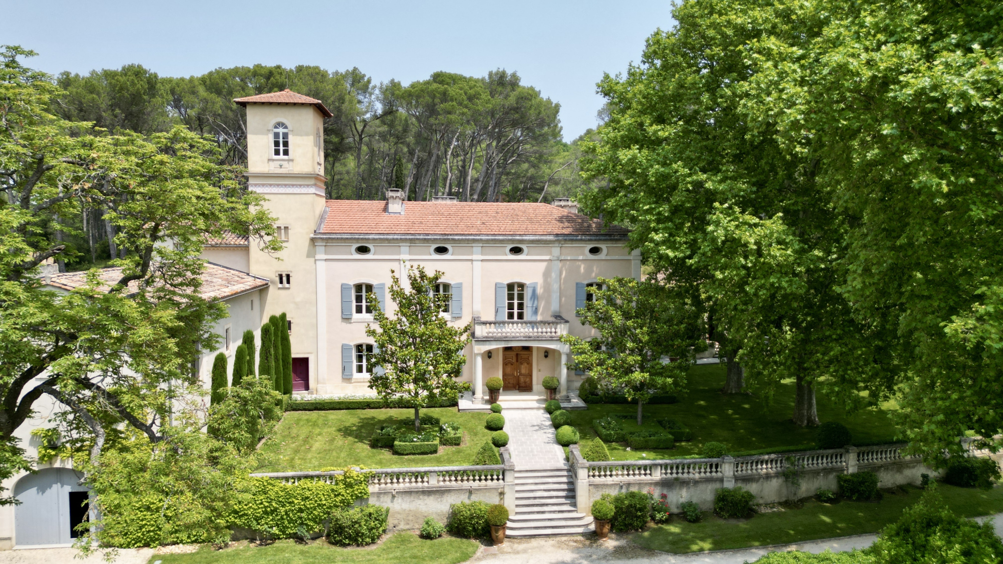 Dans un environnement préservé et unique, le parc est doté d'une chapelle privée. Il est composé d'essences locales conférant à la propriété tout le charme provençal. Aménagé en restanques au Nord, il conduit à la pinède où règne un calme absolu.