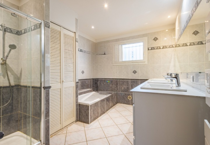 La villa dispose de cinq chambres, dont deux suites, ainsi que de nombreux espaces annexes pouvant être aménagés selon vos envies : salle de sport, home cinéma, bureau...
