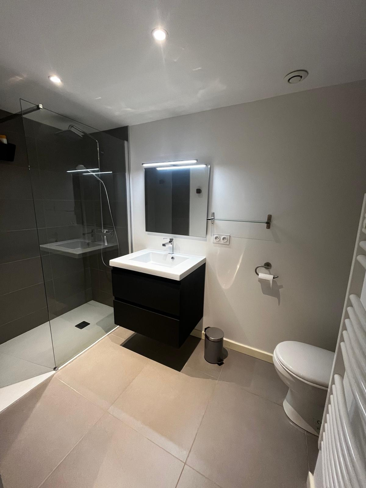 Un grand garage de 67 m2 avec atelier ainsi qu'une pièce de jeux avec mur d'escalade de 43 m2 .