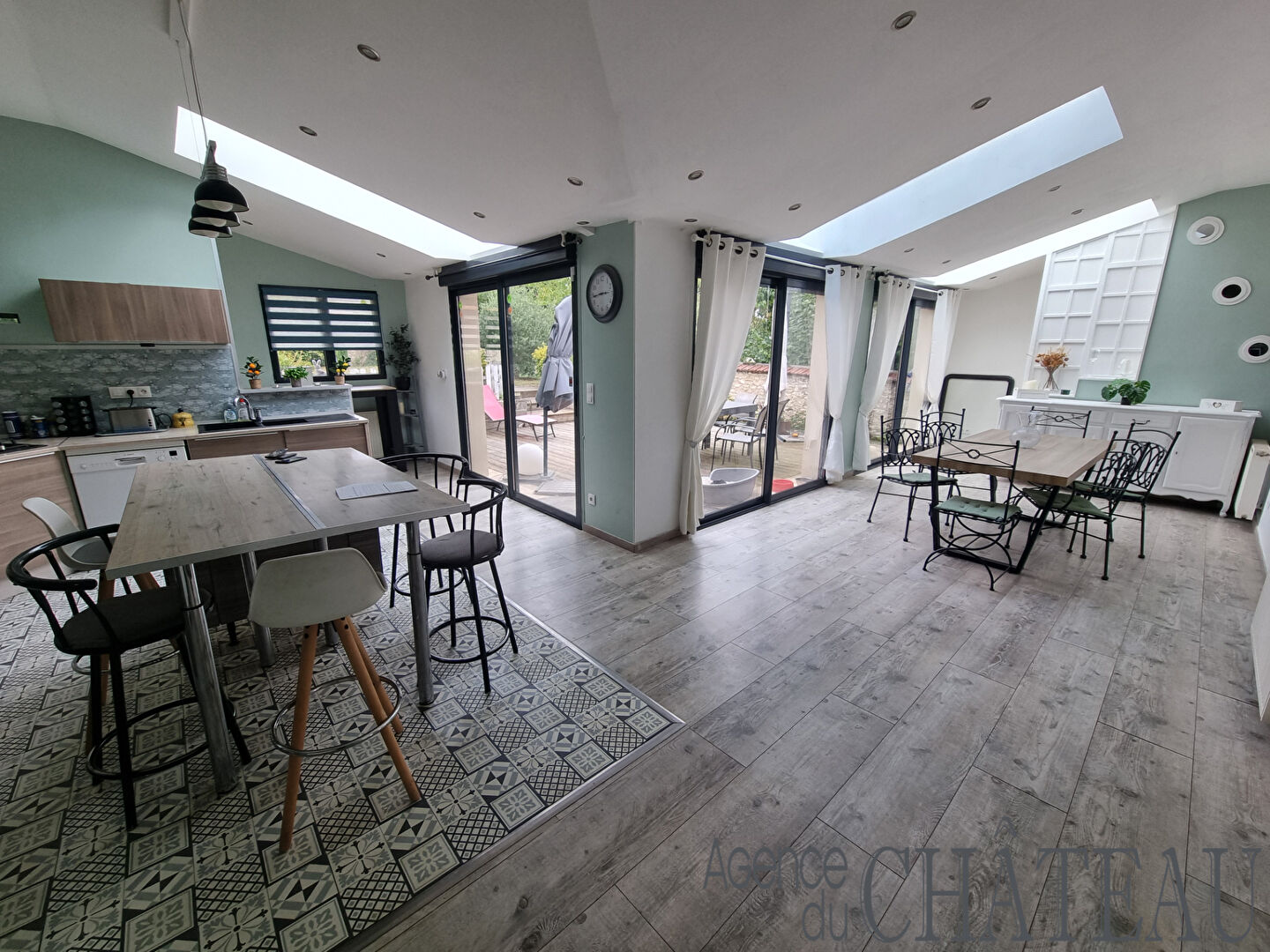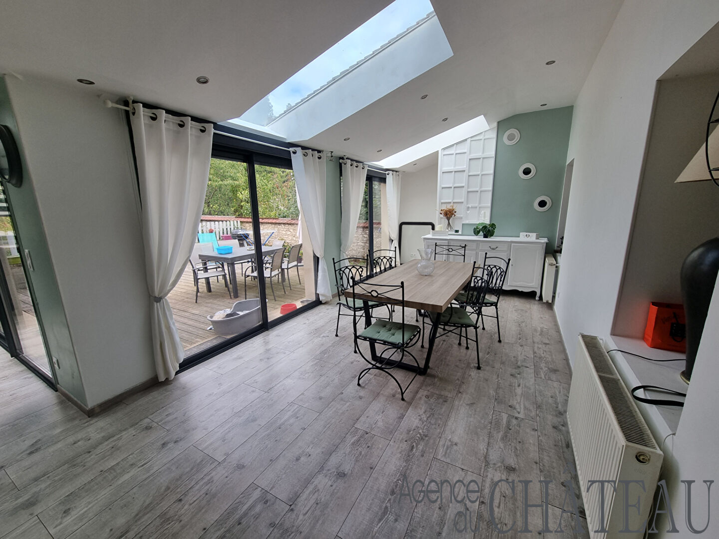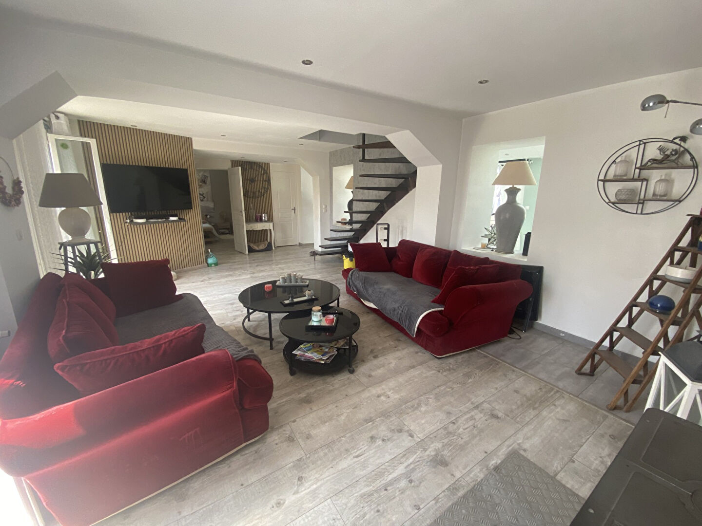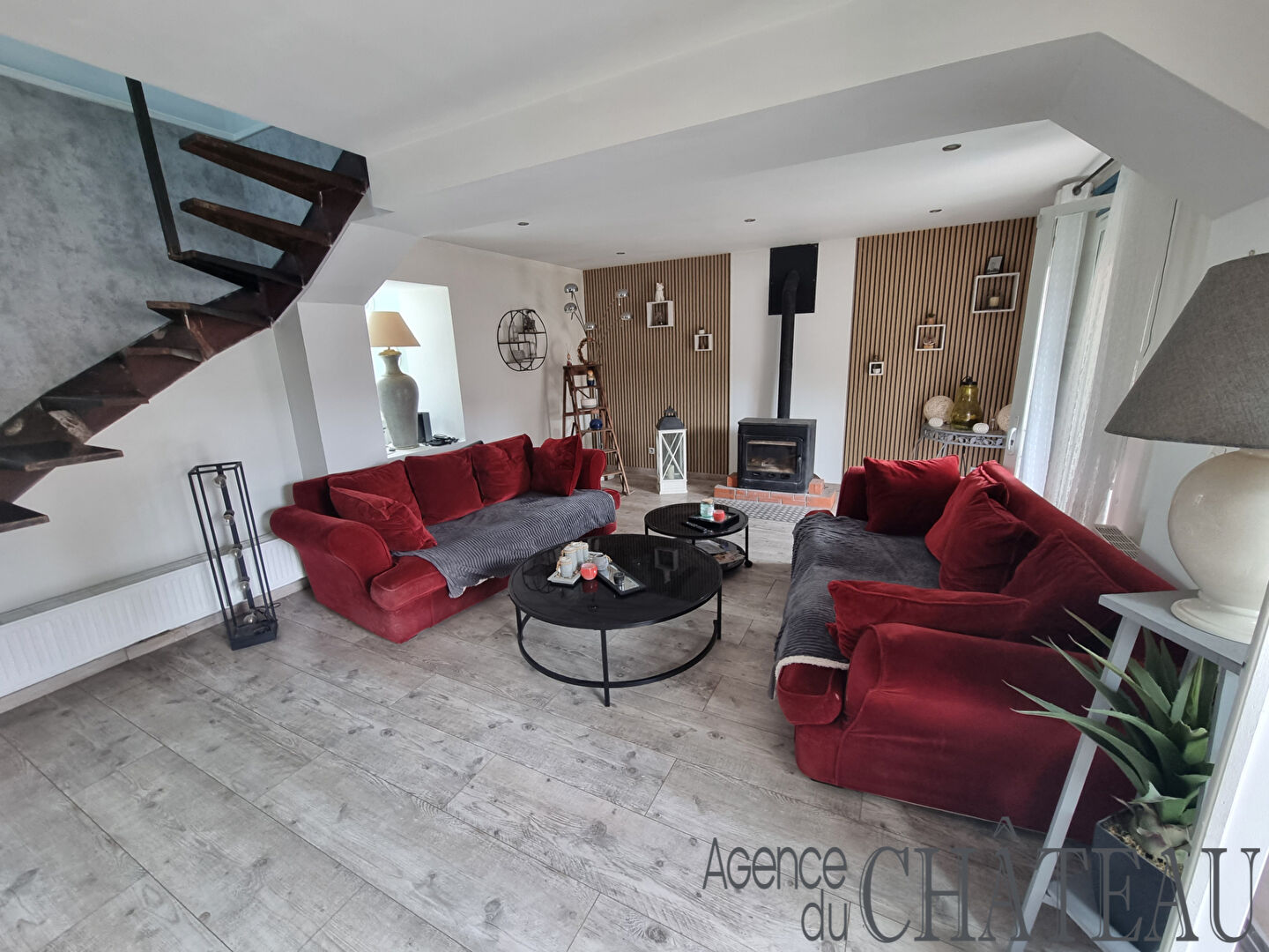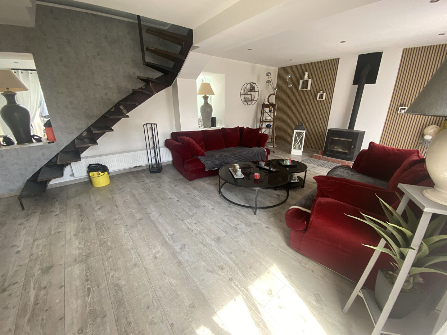 Le rez-de-chaussée vous accueille avec une entrée, un double séjour lumineux agrémenté d'un poêle à bois.