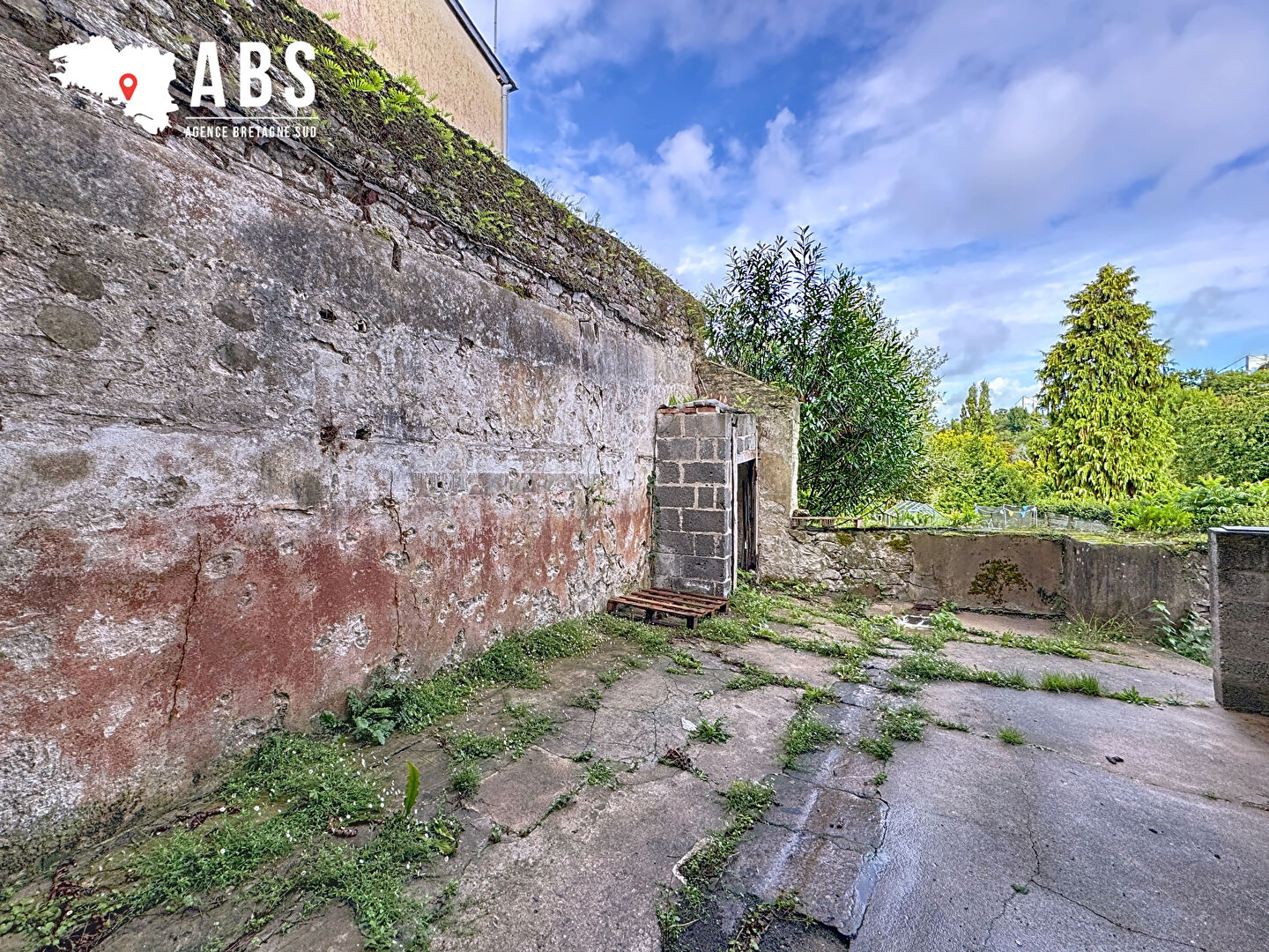 un bureau, une cuisine aménagée, un wc, une courette