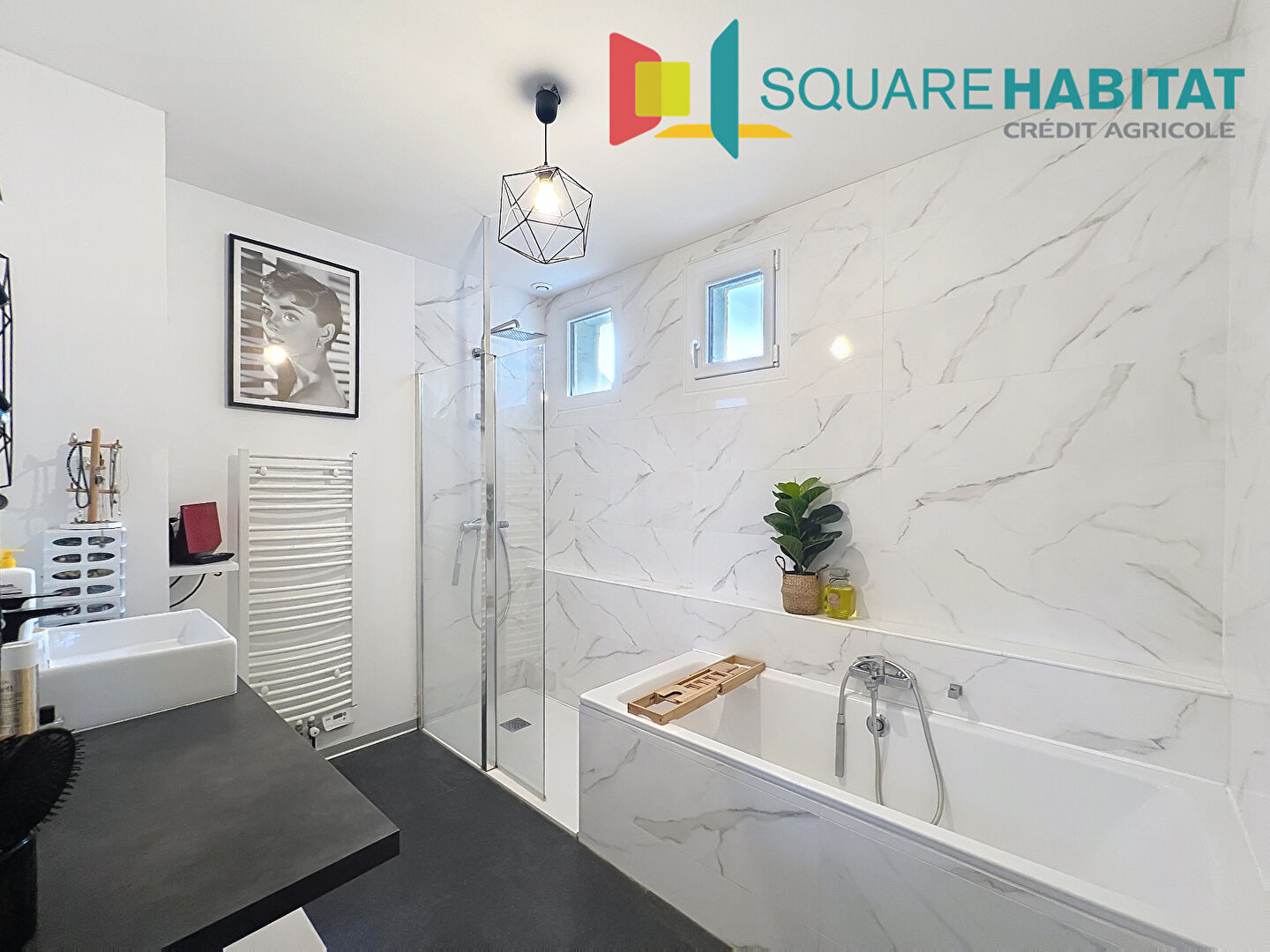 Son premier niveau se compose d'une belle entrée avec hauteur, desservant une pièce de vie spacieuse et lumineuse agrémentée d'un insert bois, une cuisine fonctionnelle toute équipée avec accès à la terrasse. De l'autre coté, un espace nuit composé d'une première chambre avec dressing, d'une salle d'eau avec douche et baignoire, d'une seconde chambre sur parquet puis d'un wc séparé.