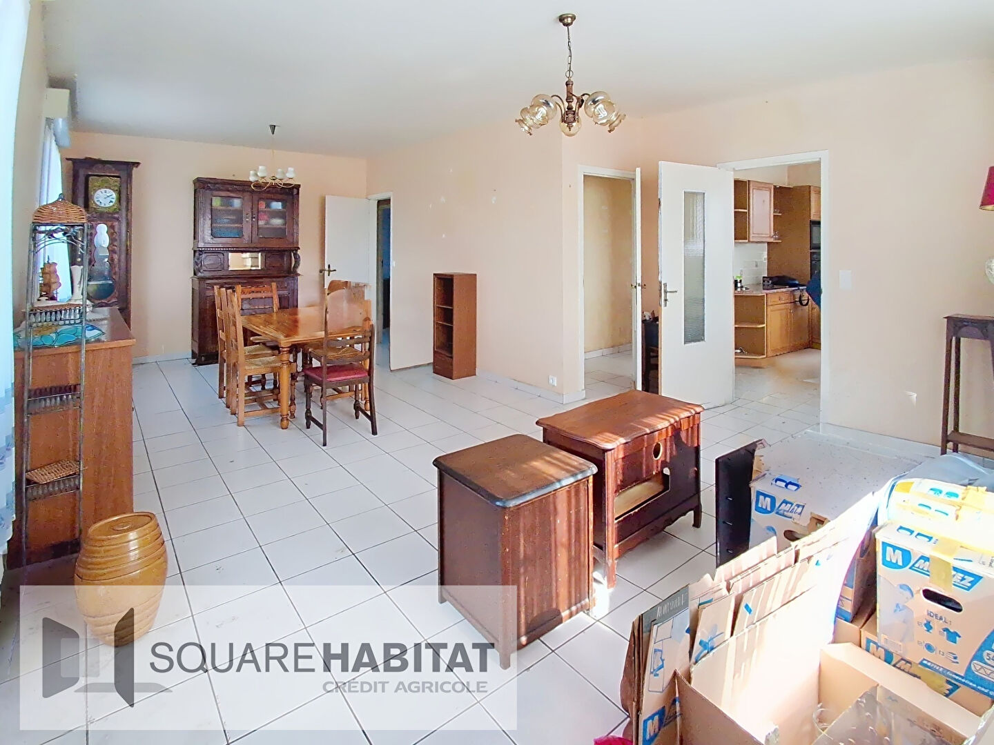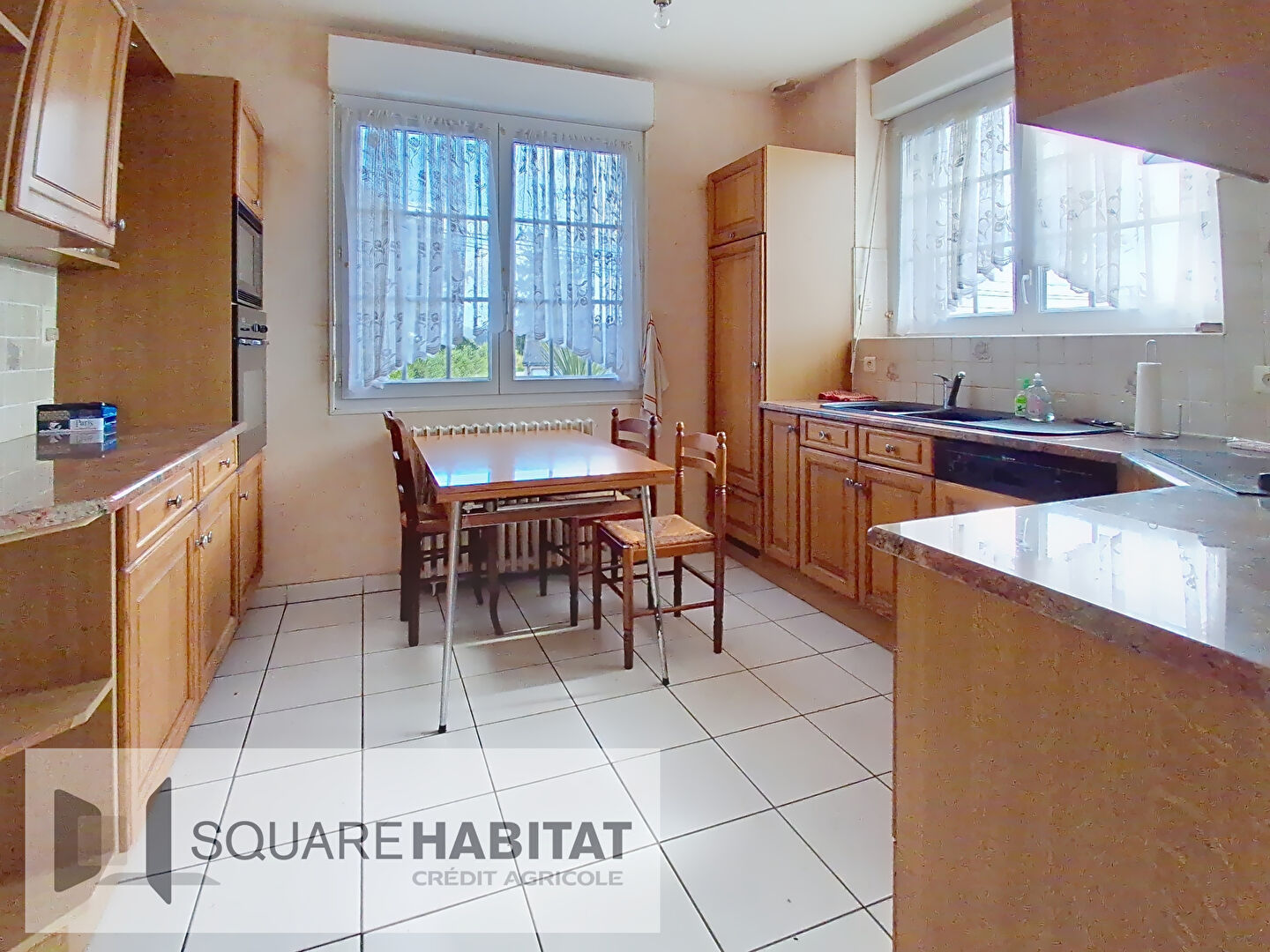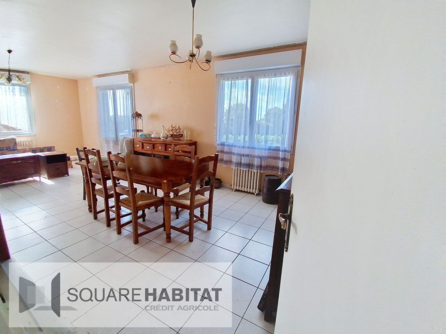 -Au rez-de-chaussée: entrée, salon avec insert, salle à manger, cuisine, 2 chambres, salle d'eau et WC.
