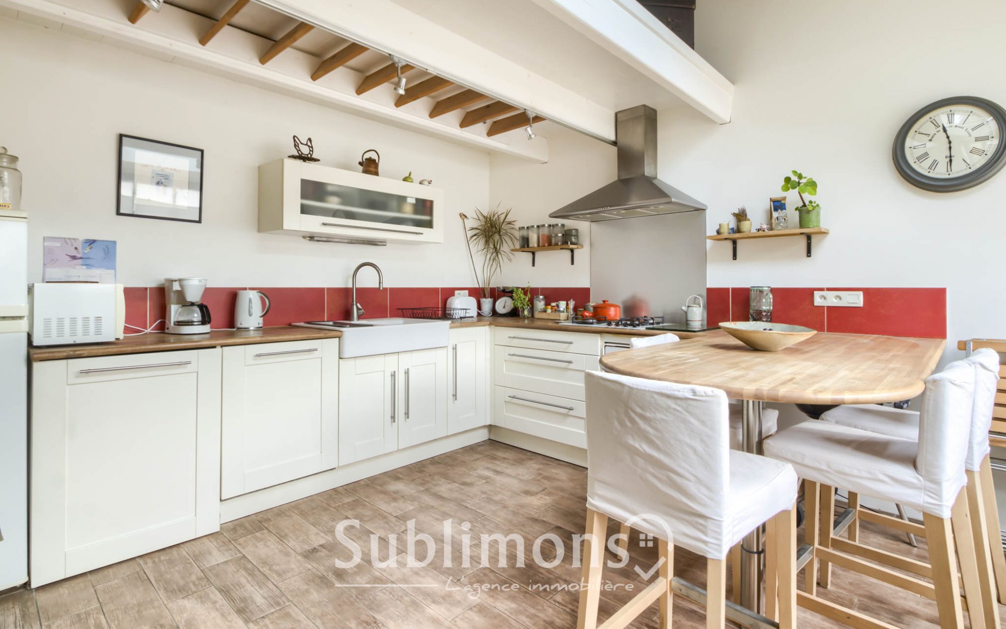 À l'étage, une mezzanine offre un espace supplémentaire modulable selon vos besoins, une chambre confortable, une salle d'eau moderne et des WC séparés complètent l'ensemble. Le stationnement est facile à proximité de la maison.