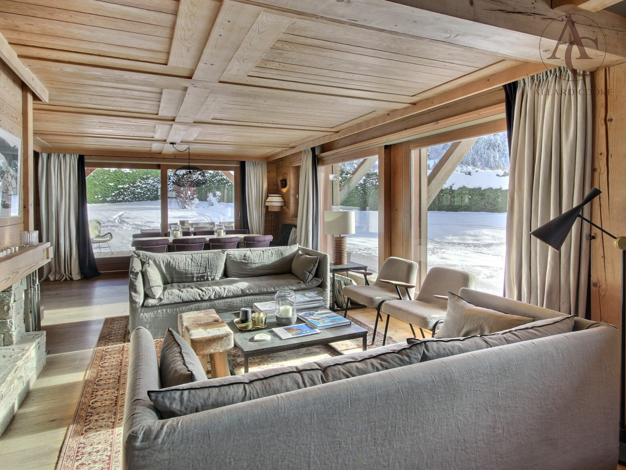 Une pièce de vie très agréable, lumineuse et chaleureuse avec sa cheminée, s'ouvre sur une grande terrasse orientée plein Sud, avec jardin. Une mezzanine aménagée en bureau, un salon home cinéma, une salle de sport/détente avec hammam, une buanderie, une chaufferie ainsi qu'un grand garage six places complètent les prestations haut de gamme de ce chalet aux volumes généreux, offrant une jolie vue dégagée sur les montagnes.