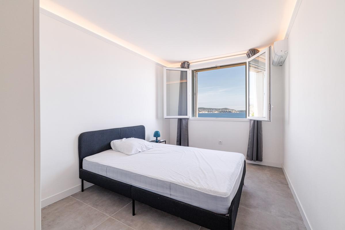 Situé au 10ème et dernier étage avec ascenseur, cet appartement traversant séduit par sa luminosité et sa vue panoramique sur la mer, visible depuis toutes les pièces principales.