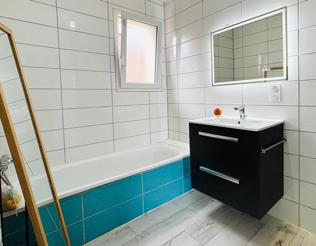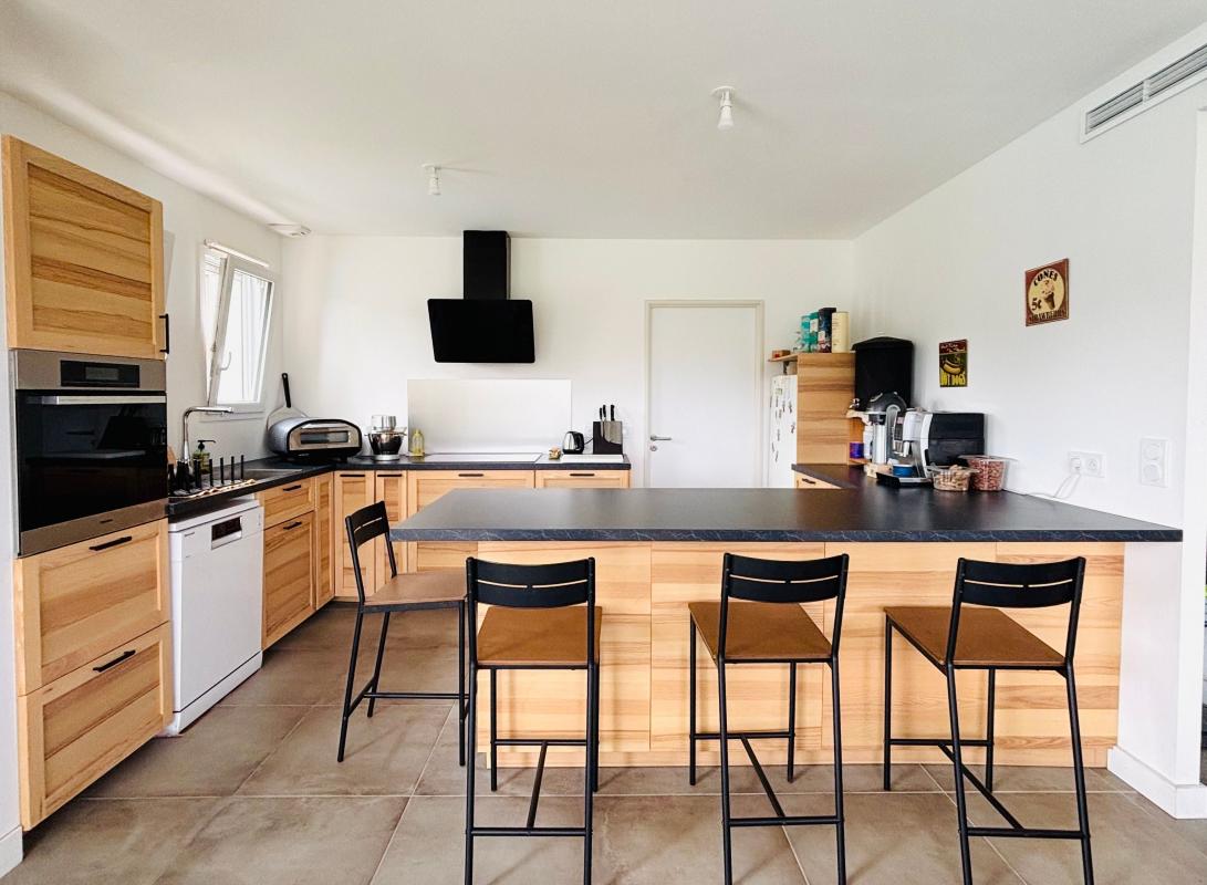 Elle se compose d'une spacieuse pièce de vie lumineuse ouverte sur le jardin grâce à ses baies vitrées à galandage, d'une cuisine aménagée, d'une suite parentale avec dressing et salle d'eau, de deux chambres supplémentaires, d'une salle de bains, d'un WC indépendant et d'un cellier.