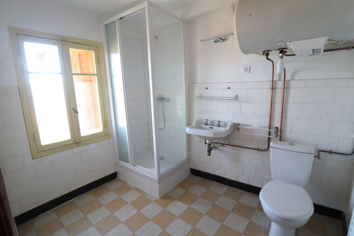 On accède par un escalier au premier niveau où se situe une cuisine indépendante à aménager, un séjour et une salle d'eau avec WC.