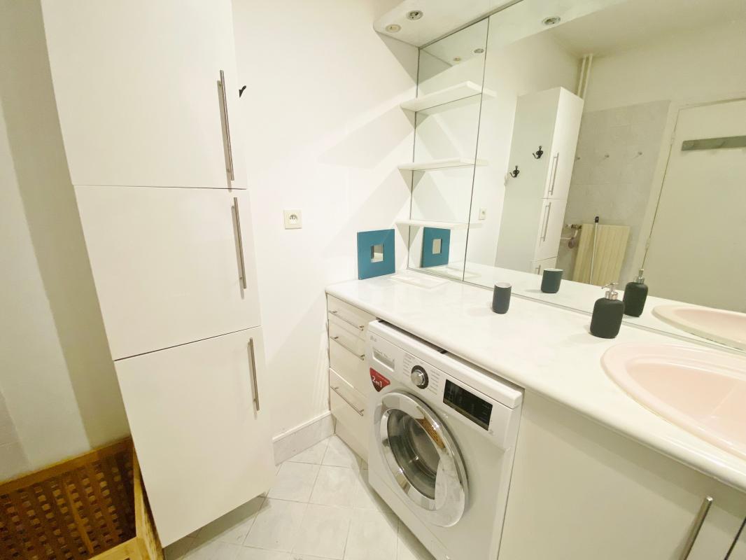 L'appartement dispose d'un balcon, la cuisine est grande et équipée , semie ouverte sur la belle pièce de vie salon -salle à manger, qui bénéficie de l'accès au balcon. Les chambres donnent sur une cour intérieure donc très au calme, le coin nuit est bien séparé du coin jour.