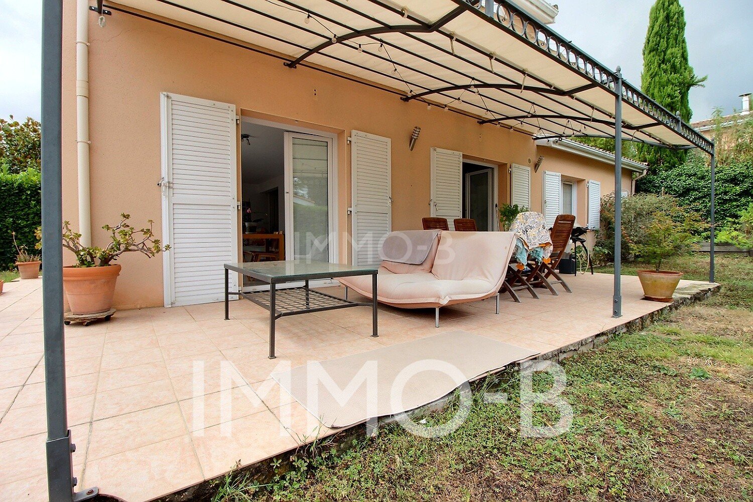 Une entrée spacieuse donnant sur un double séjour avec sa baie vitrée sur le jardin, une cuisine aménagée et équipée ouverte sur le séjour ainsi que sur une belle et grande terrasse couverte d'une pergola. Cette maison bénéficie également d'une chambre au rez-de chaussé pouvant servir de bureau et donnant sur le jardin. Au premier étage le dégagement dessert deux chambres avec placard avec une salle d'eau entre les deux chambres, une suite parentale avec salle de bain et placard.