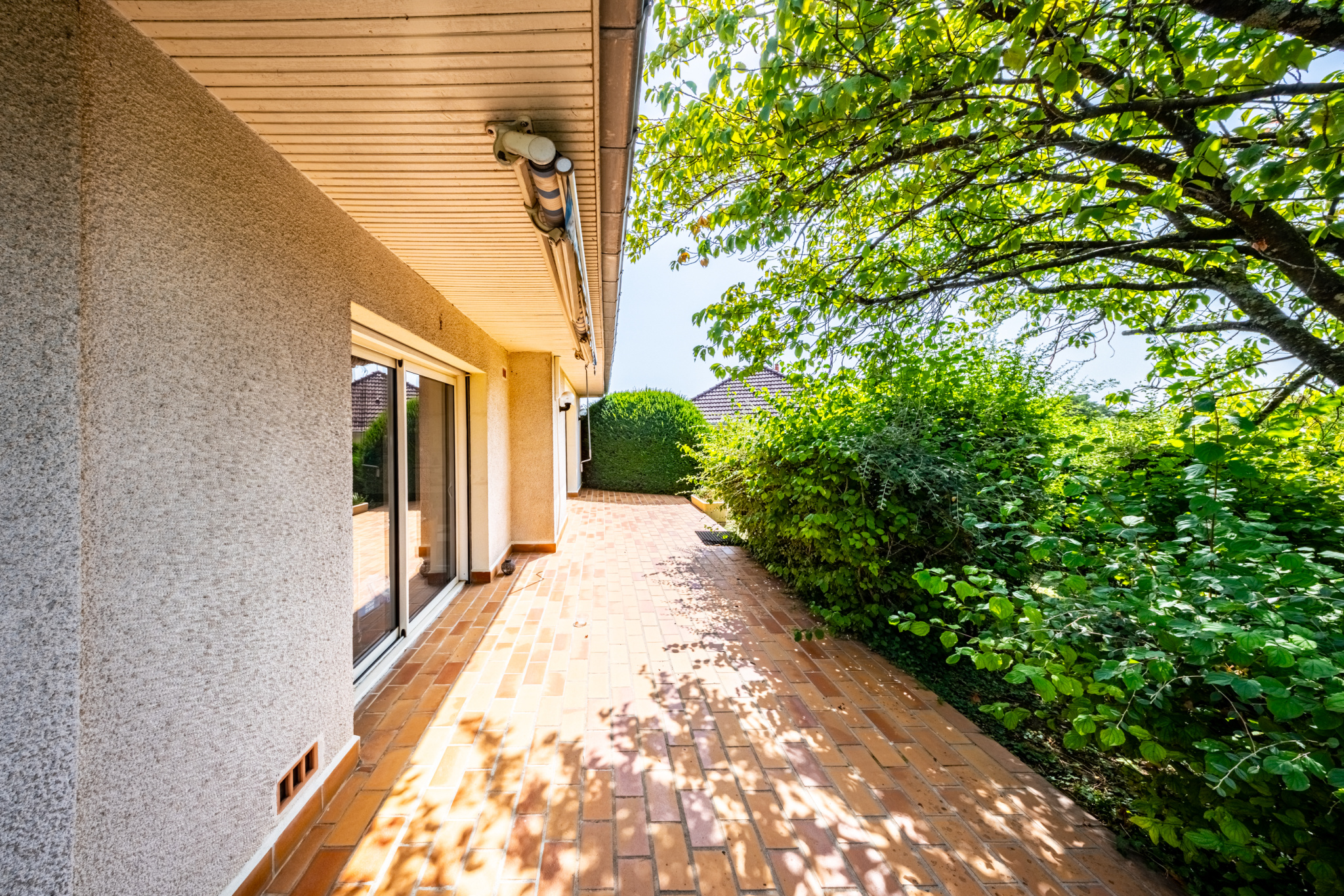 Huisseries double vitrage en PVC, pompe à chaleur, zinguerie et toiture en parfait état.