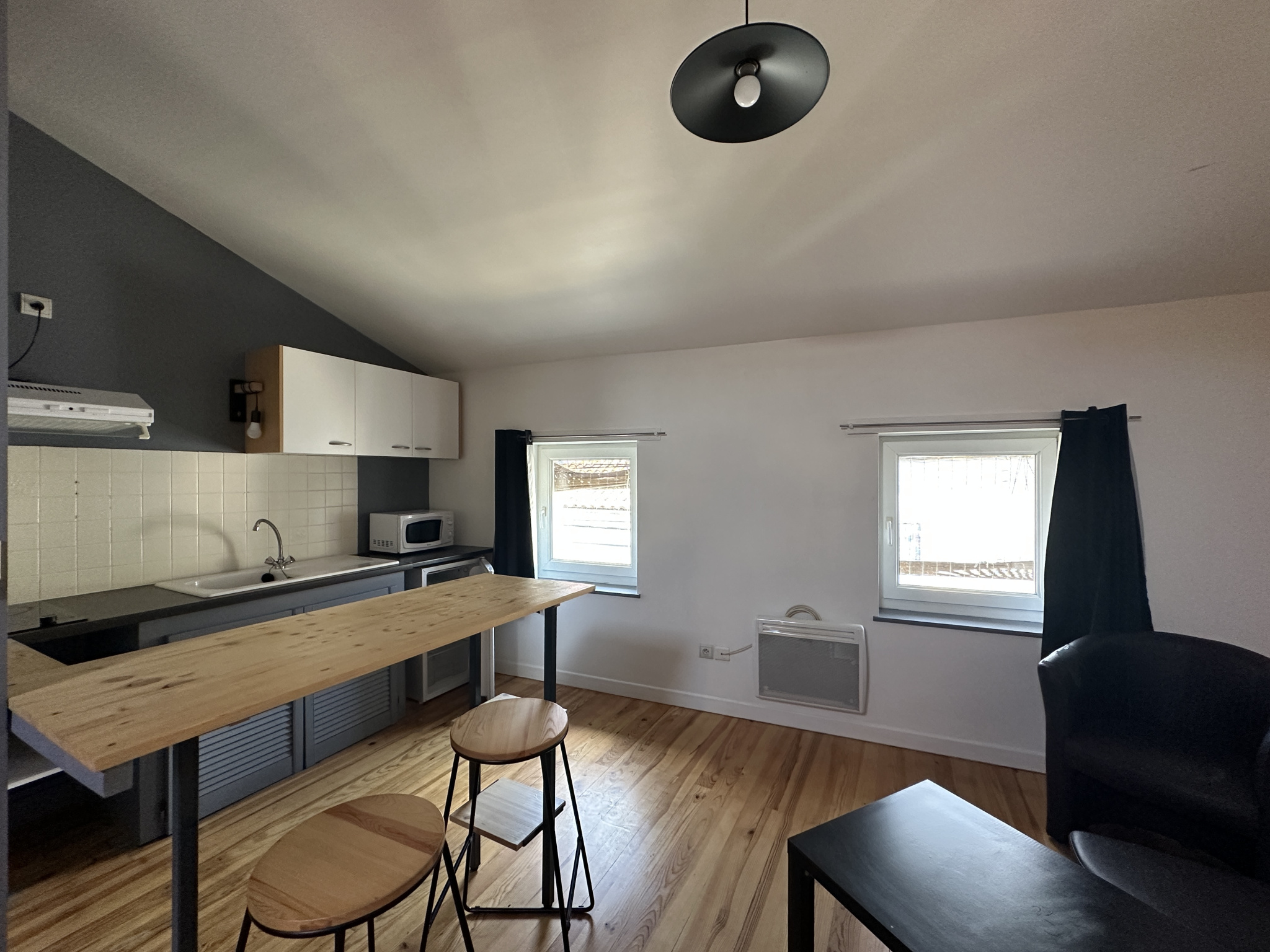 Au deuxième étage: un studio mansardé et équipé, loué au prix de 330EUR + 30EUR de charges soit 360EUR C.C.